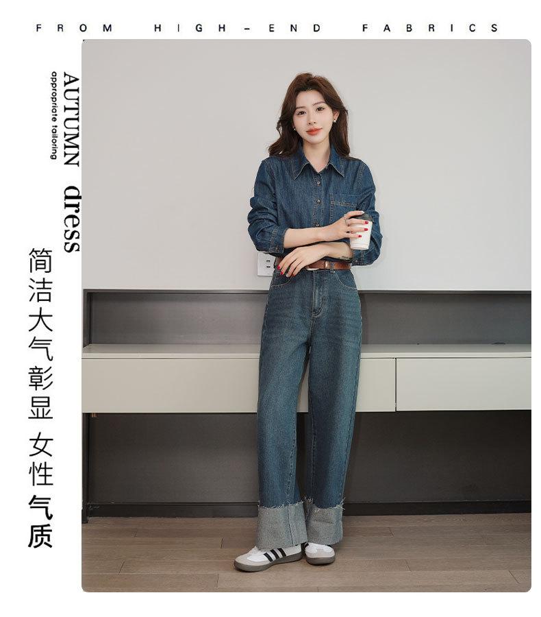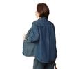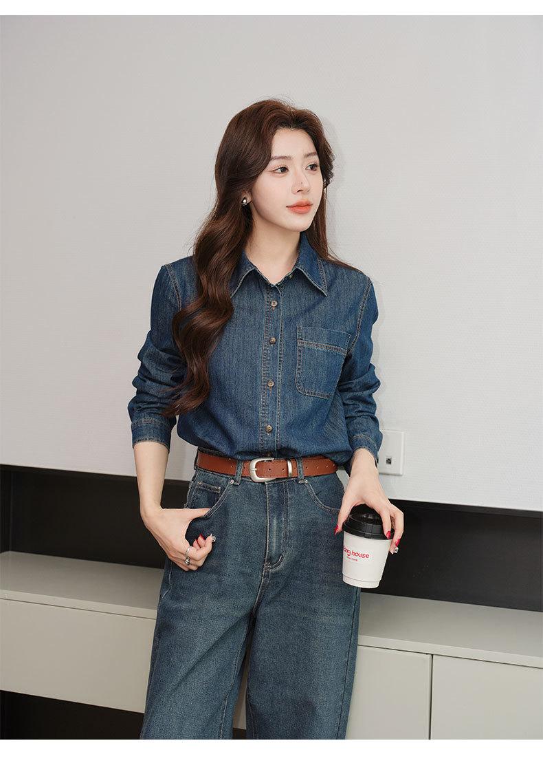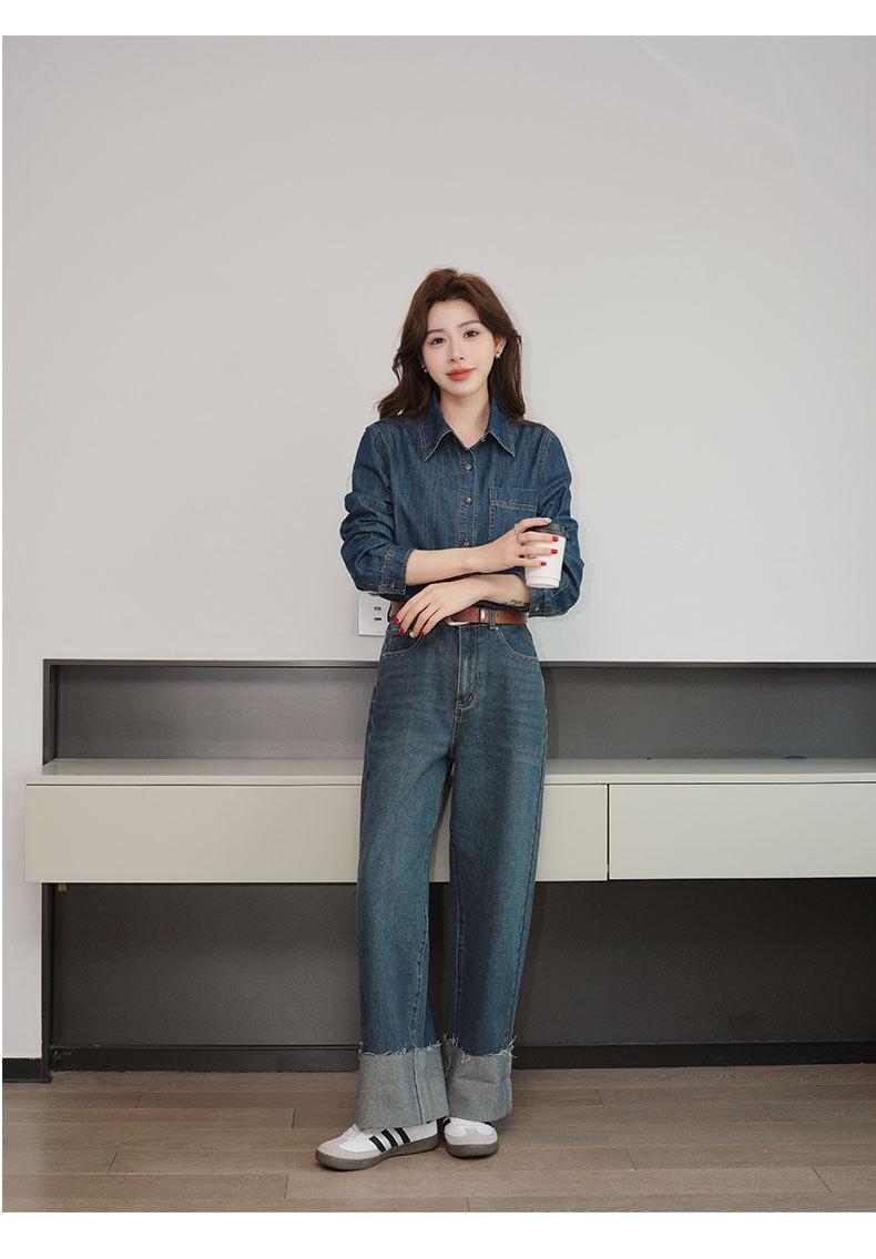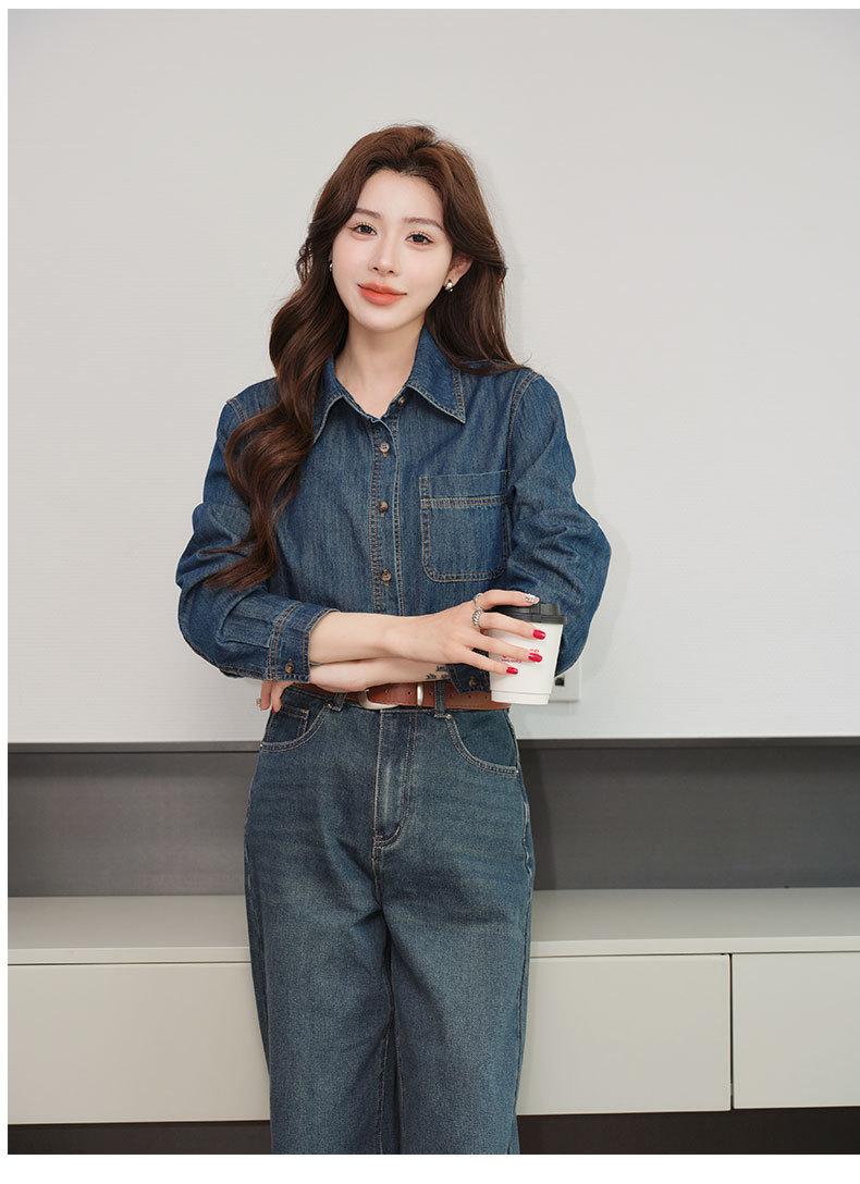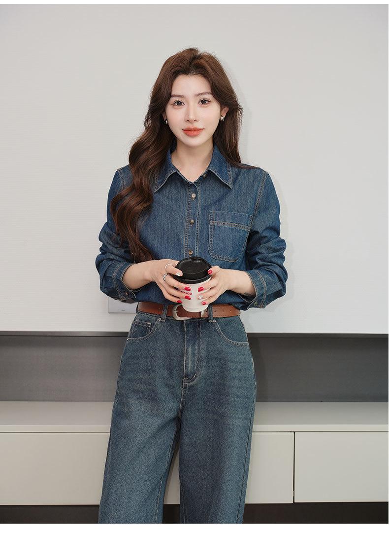 Imagen real de una chaqueta vaquera de manga larga estilo retro de Hong Kong con capas para mujer, primavera 2025.