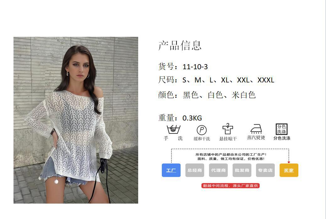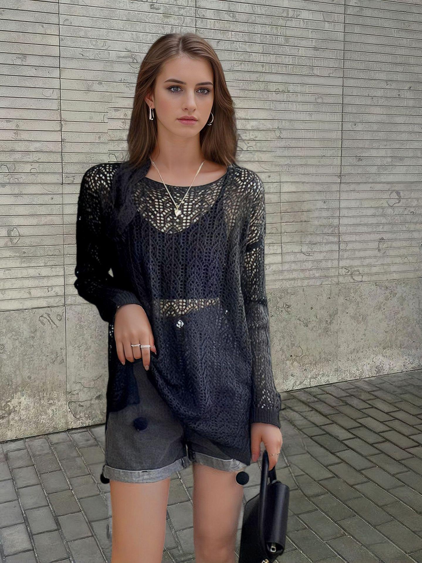 Verano Europeo y Americano Transfronterizo Nuevo Suelto Cuello Palabra Hueco Amazon Bikini Dividido Camisa Tejida Protector Solar para Mujer