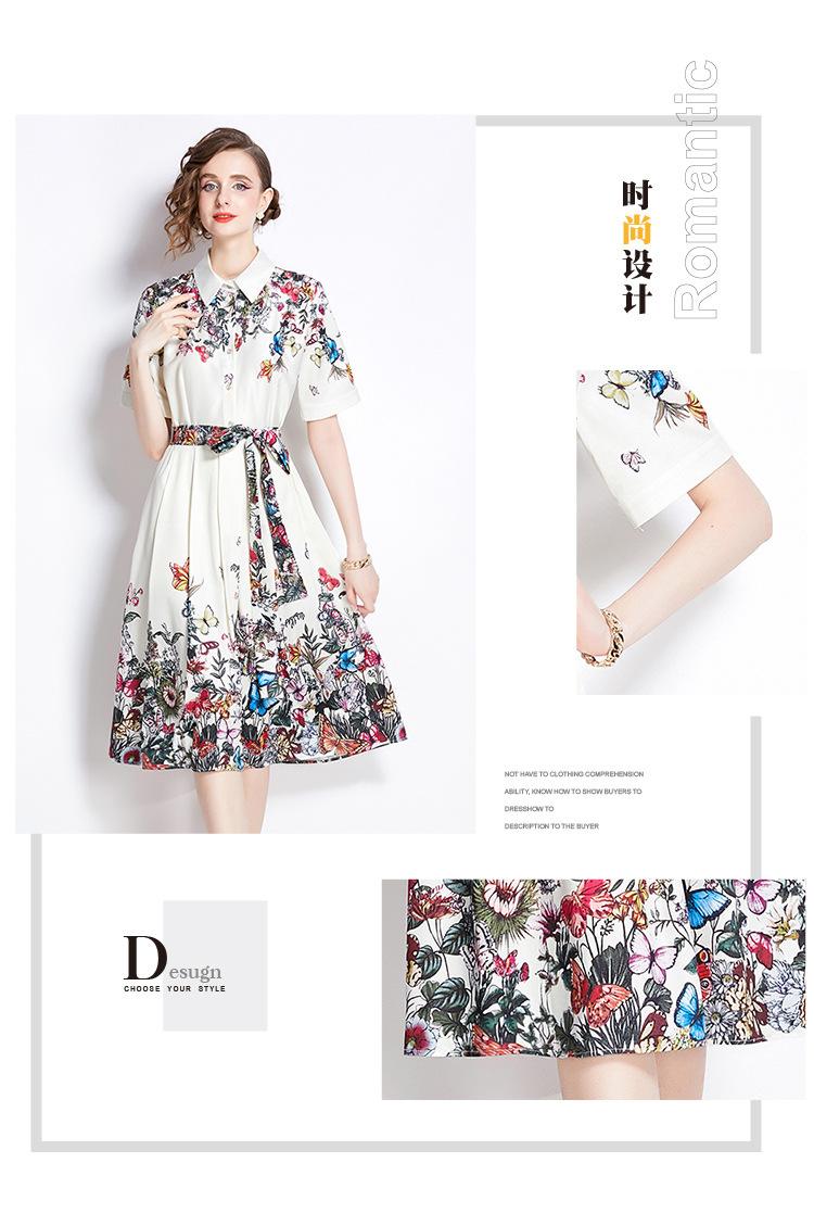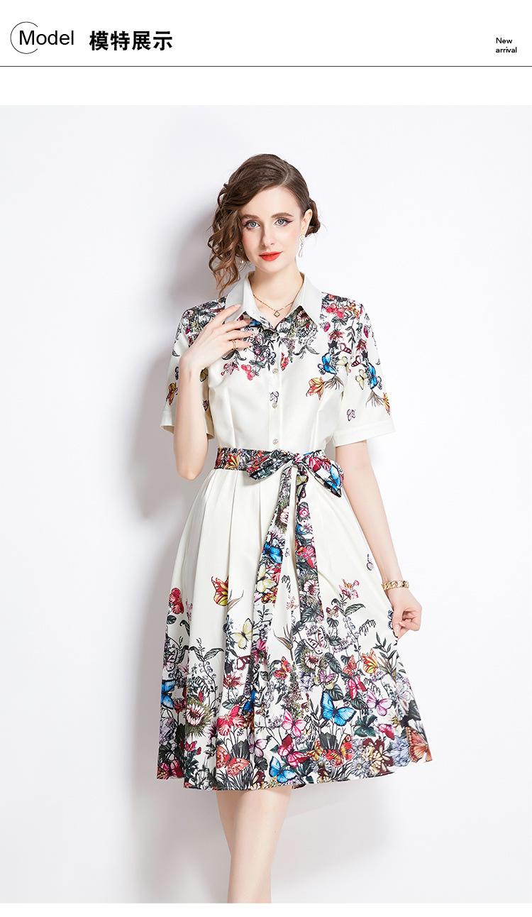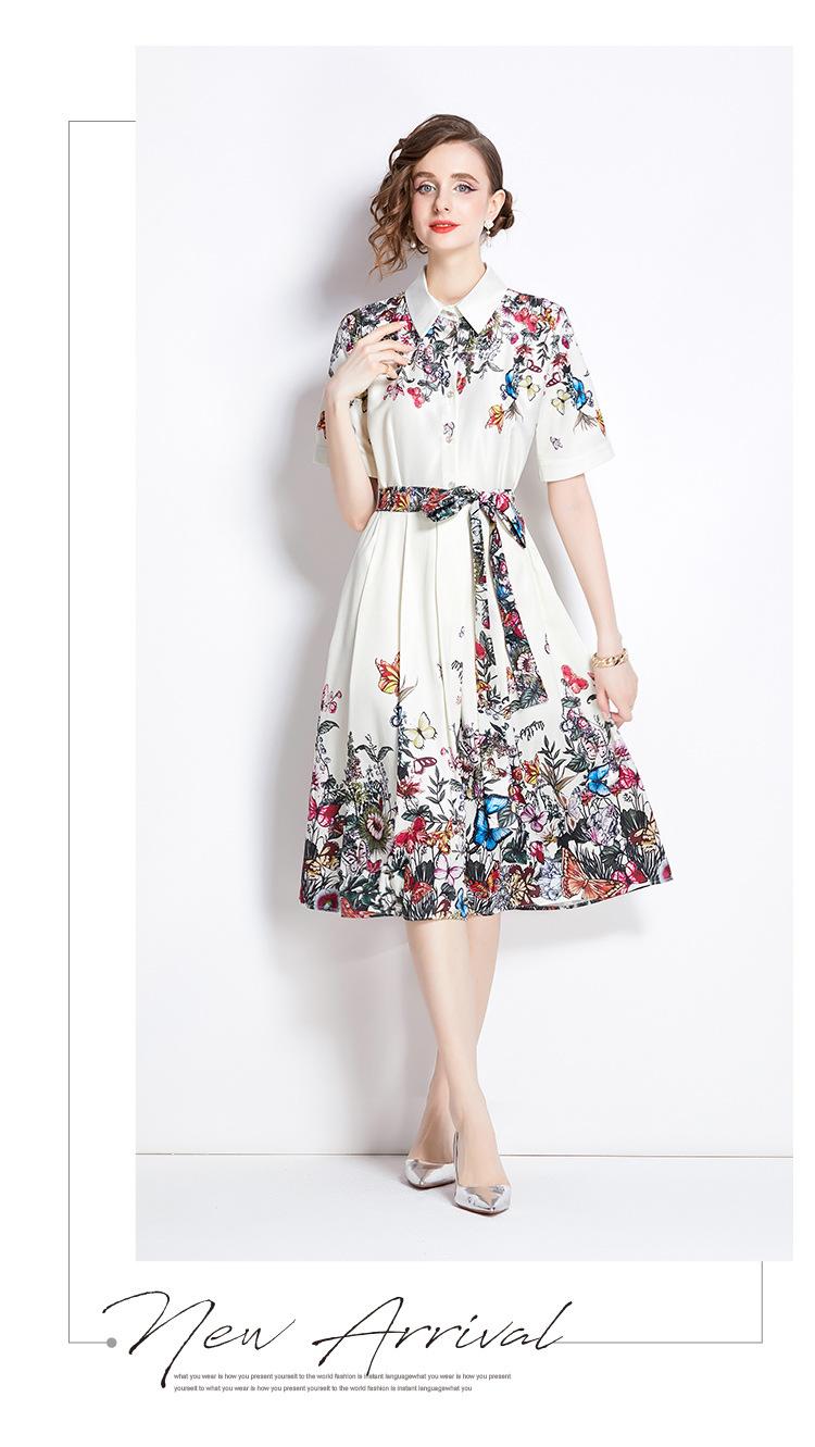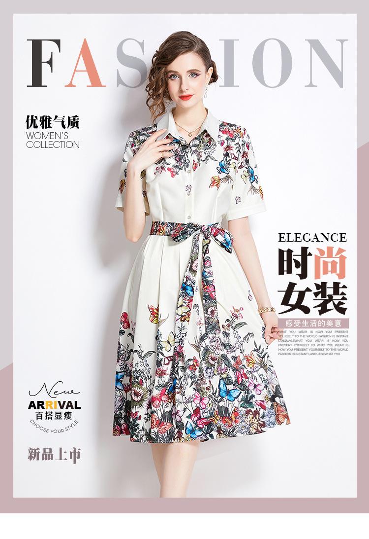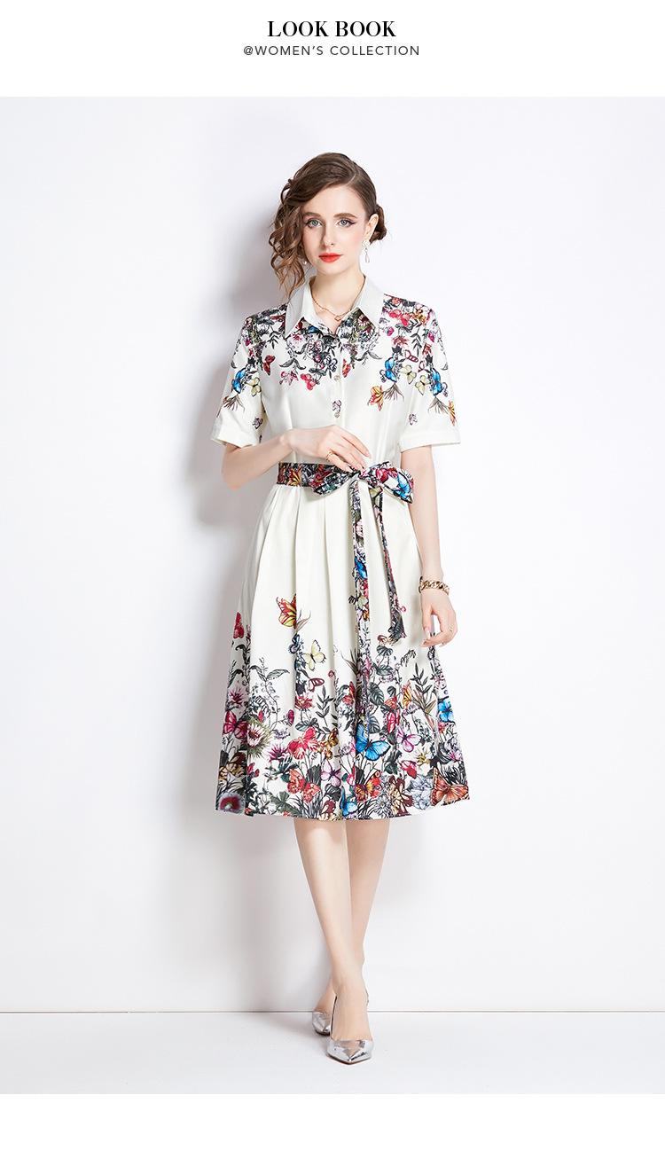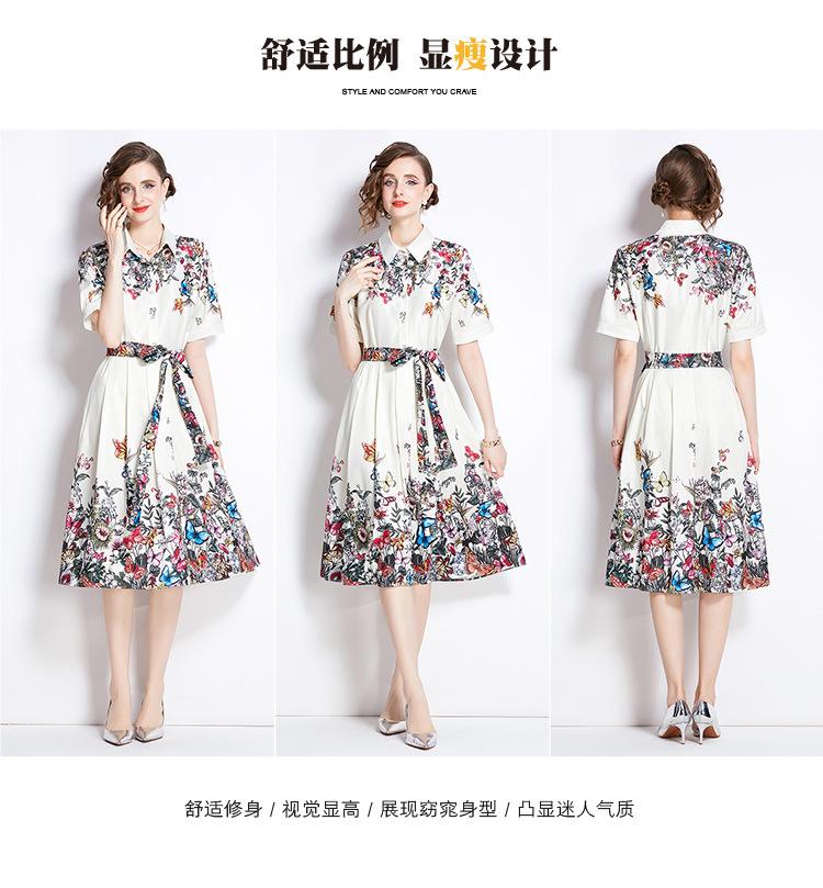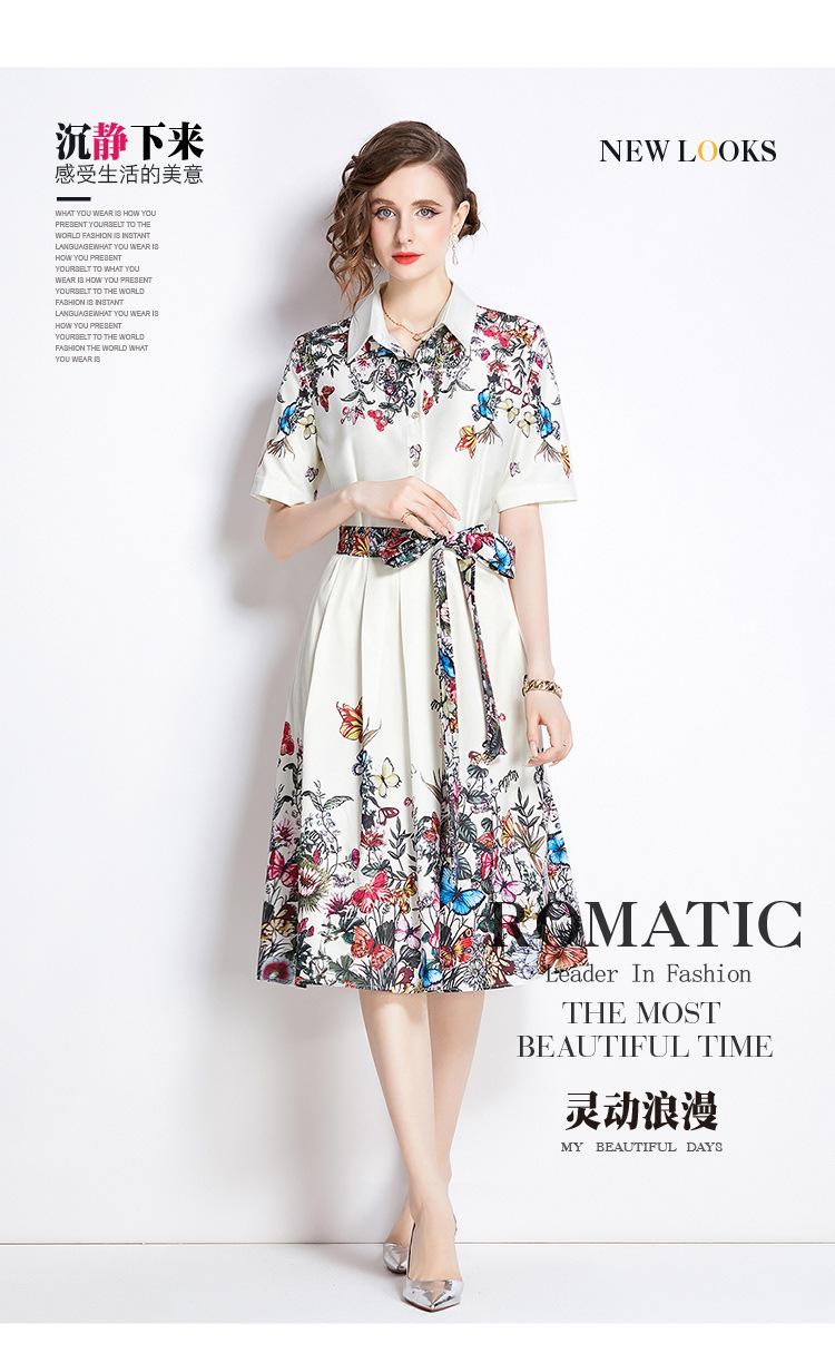 Vestido Estampado de Posicionamiento con Solapa de Cintura con Cordones 2024 Moda Europea y Americana Versátil Adelgazante de Cintura