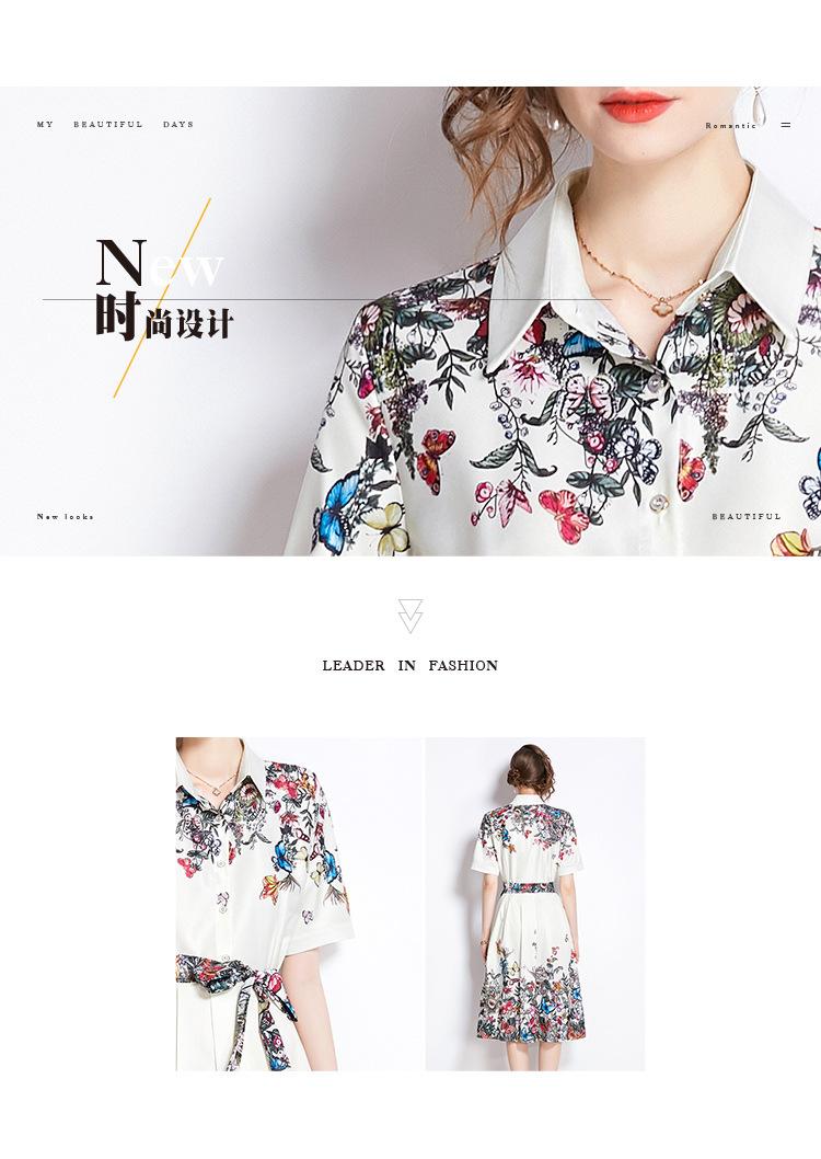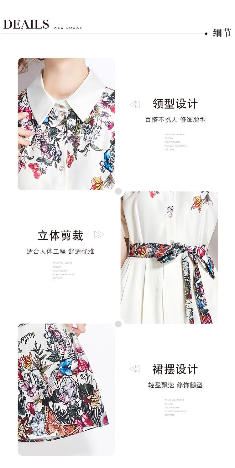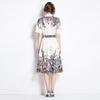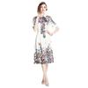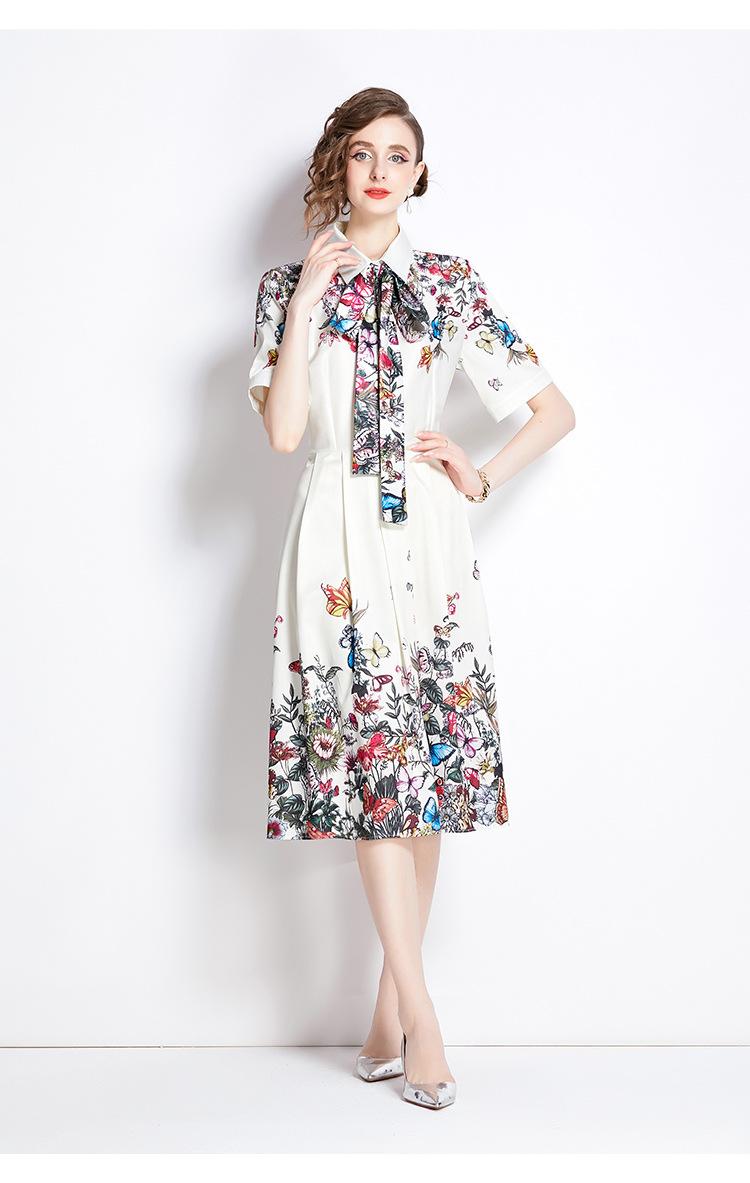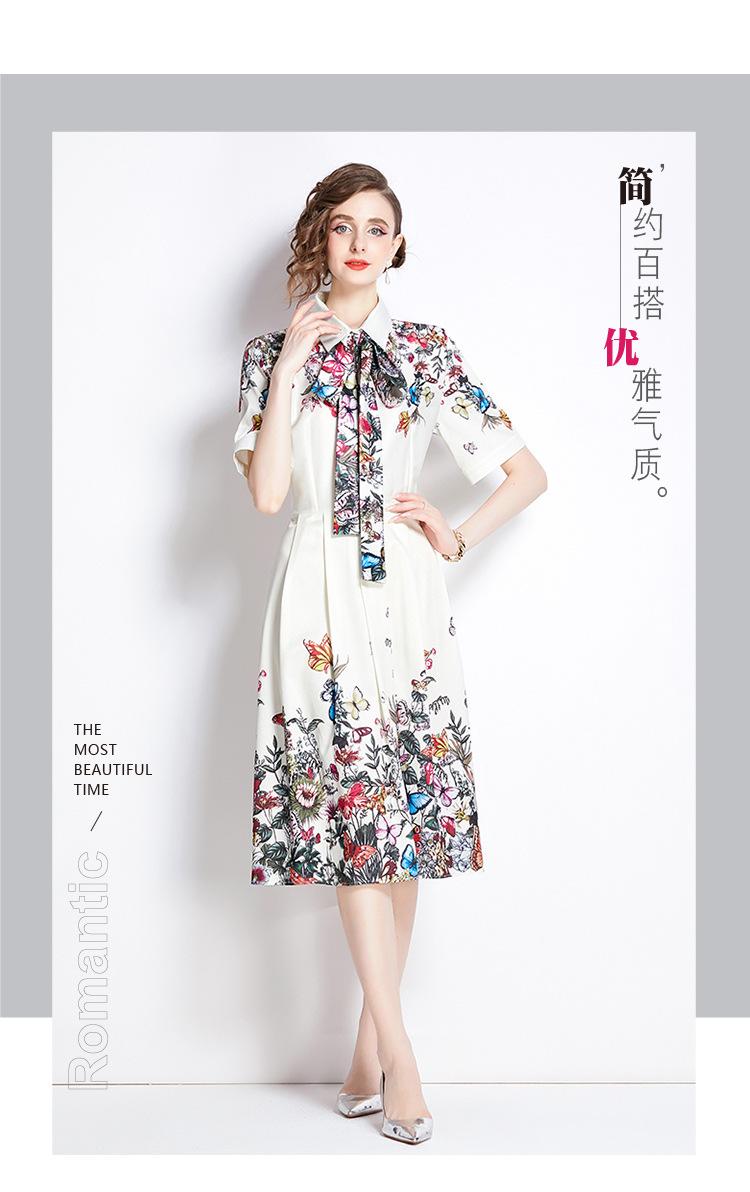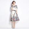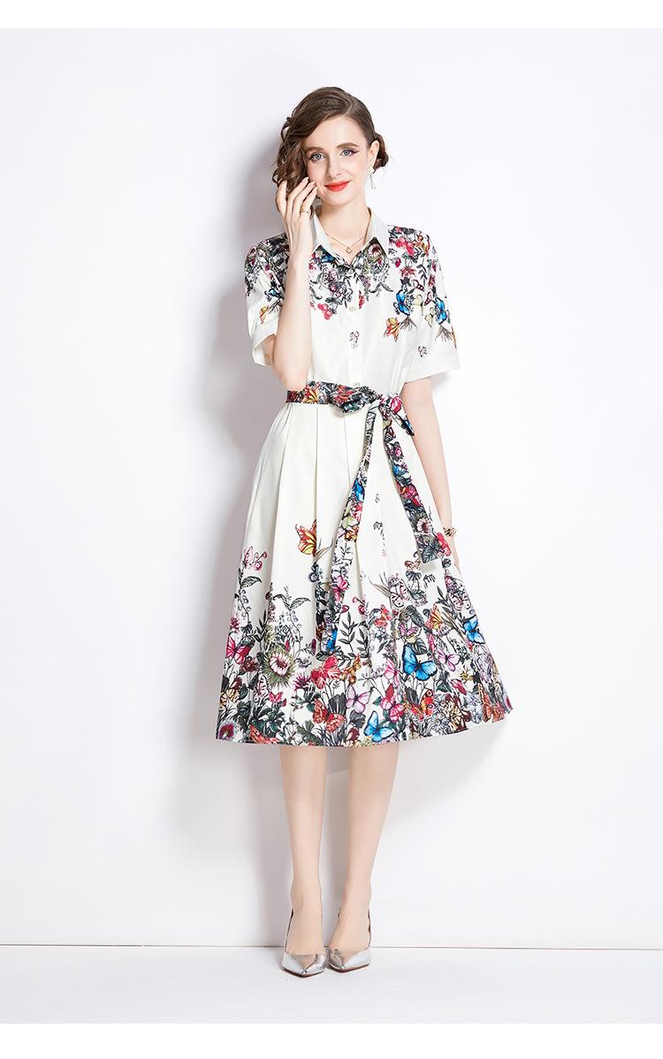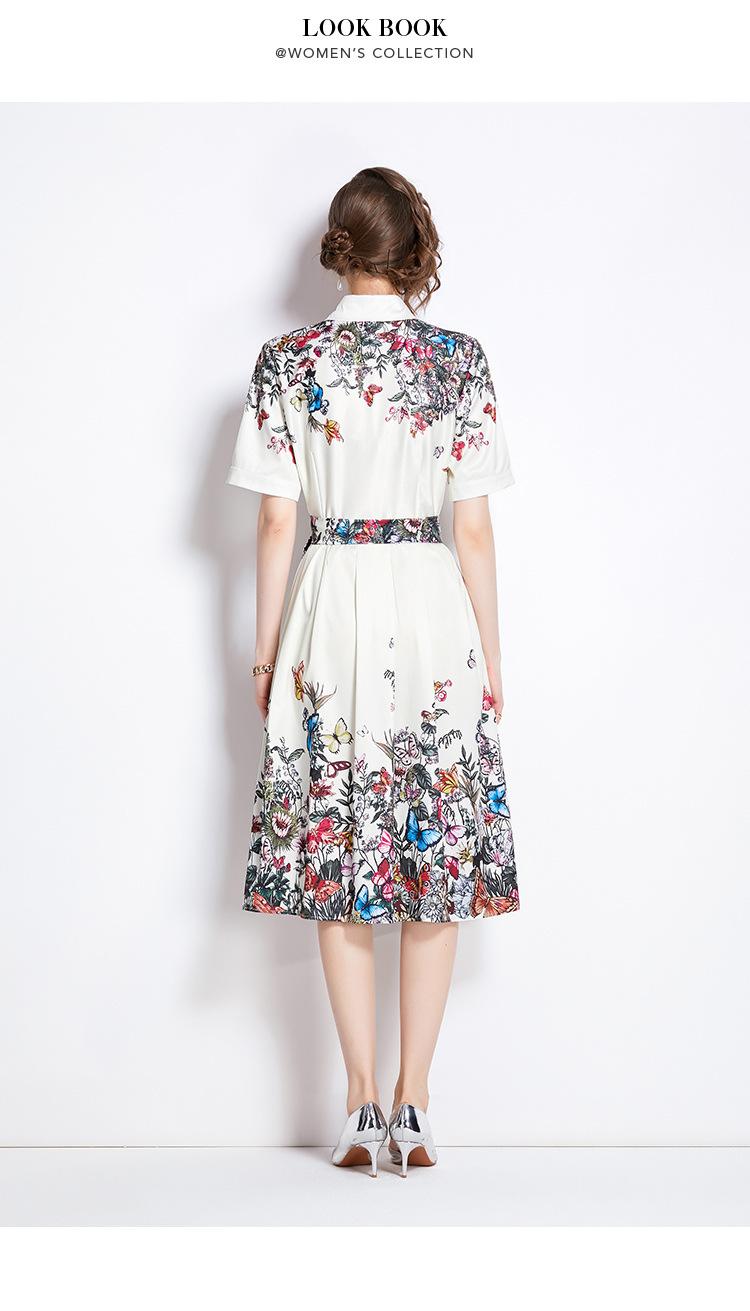 Vestido Estampado de Posicionamiento con Solapa de Cintura con Cordones 2024 Moda Europea y Americana Versátil Adelgazante de Cintura