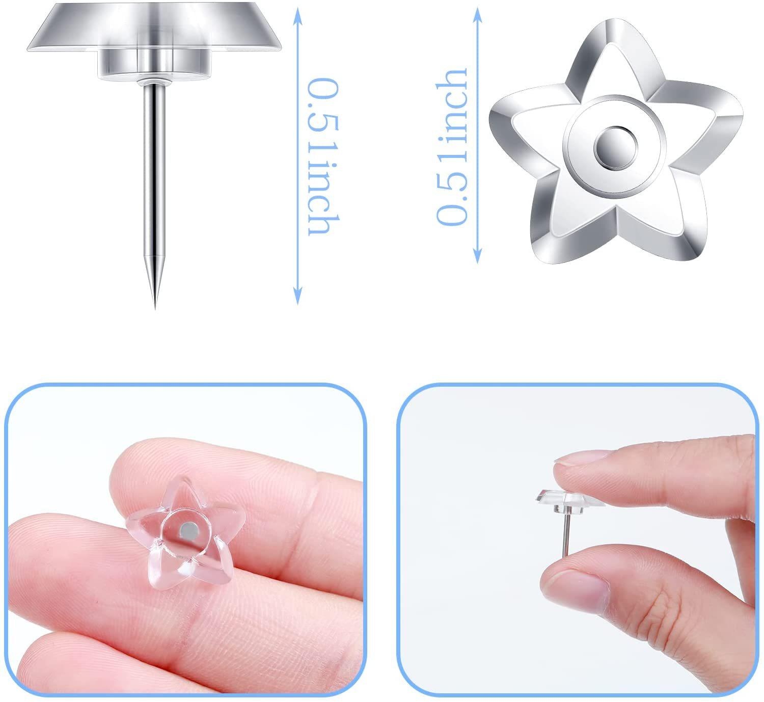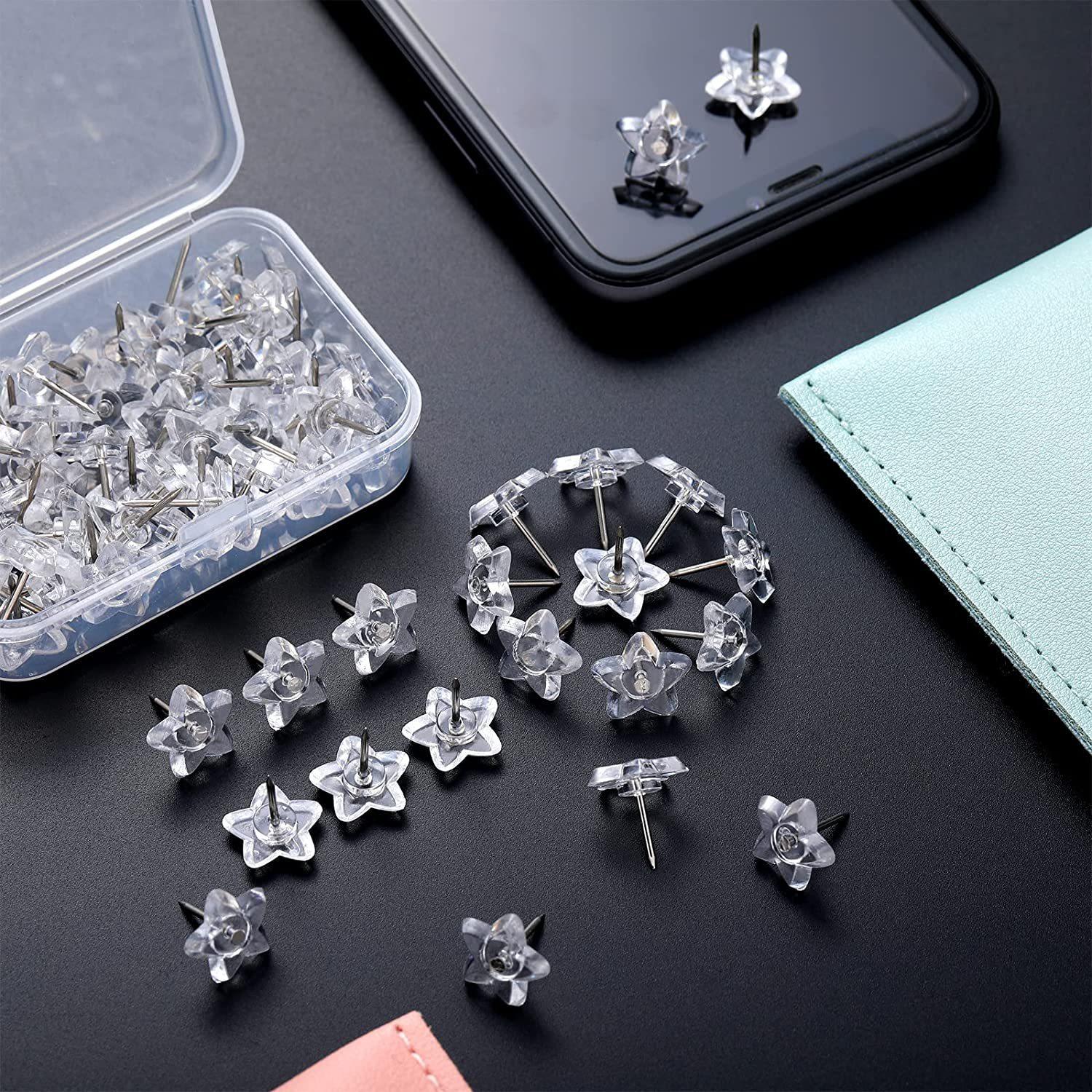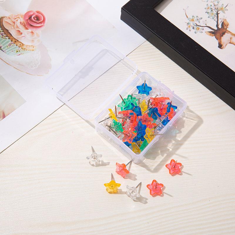 Amazon Transfronterizo Plástico Colorido Transparente Forma de Tachuela de Estrella de Cinco Puntas Alfiler de Cabeza Grande para Encuadernar Corcho de Pared Clavo Chincheta