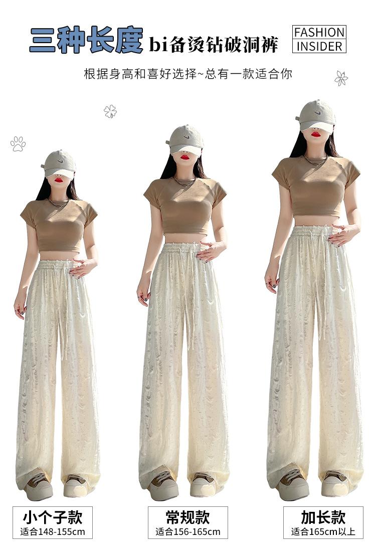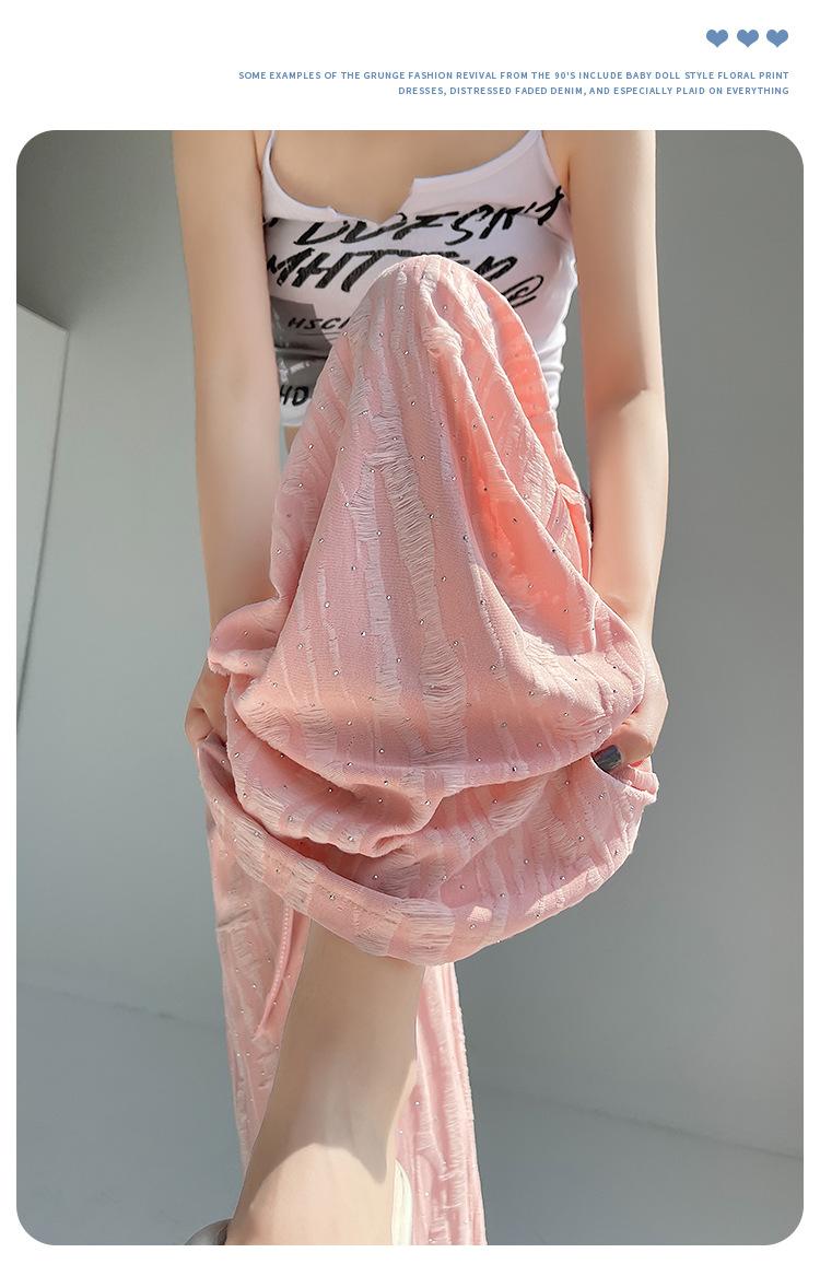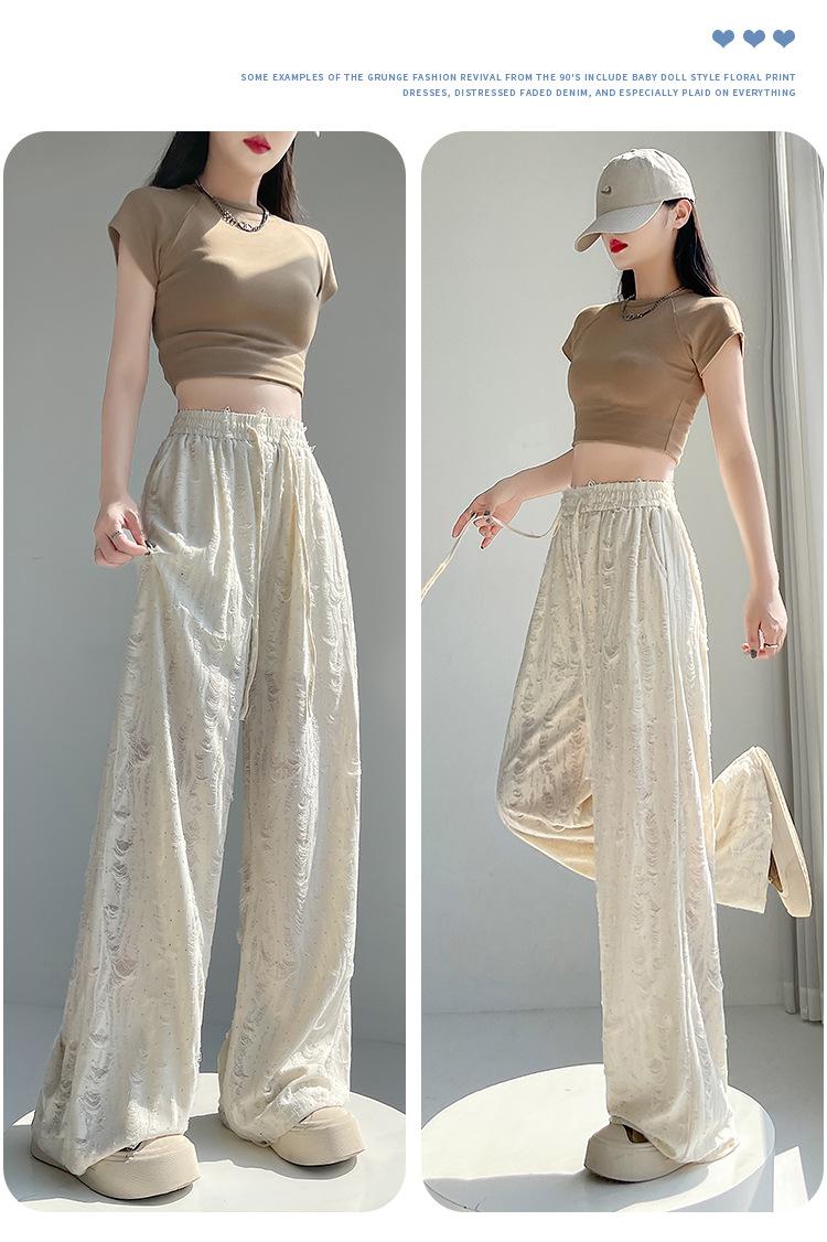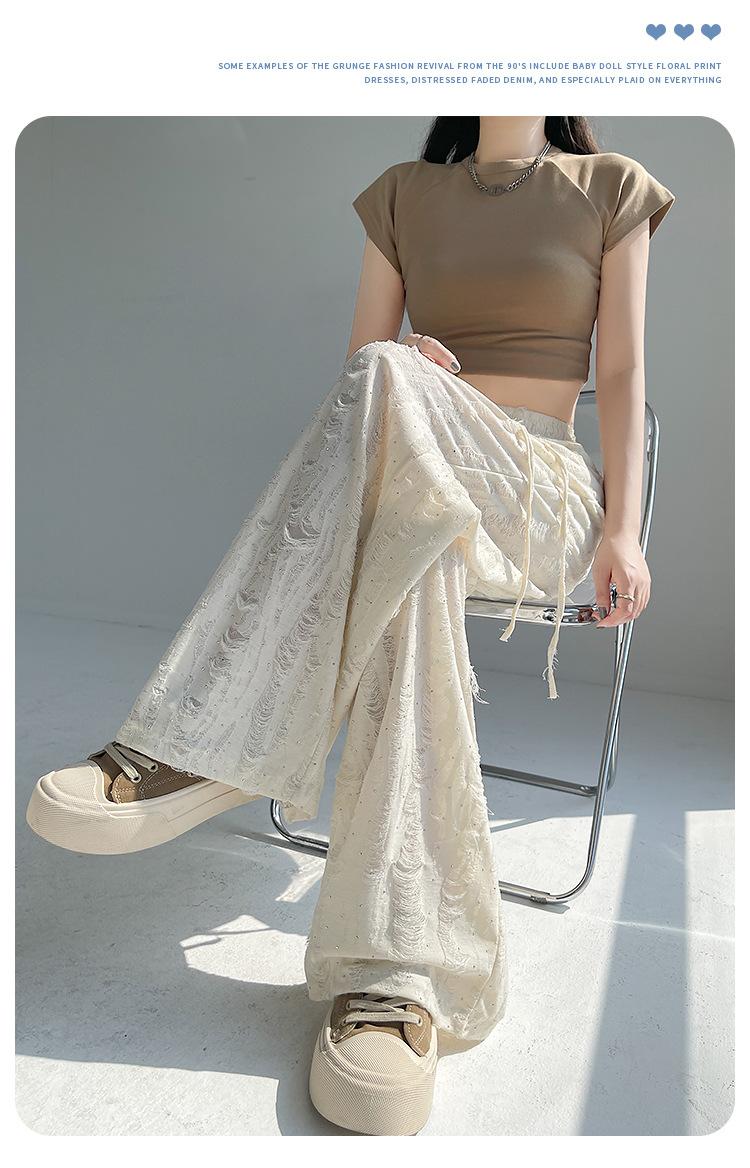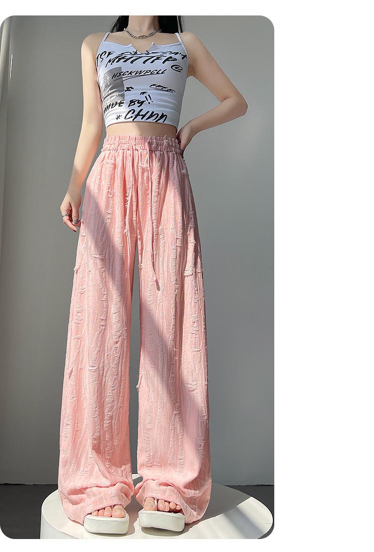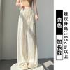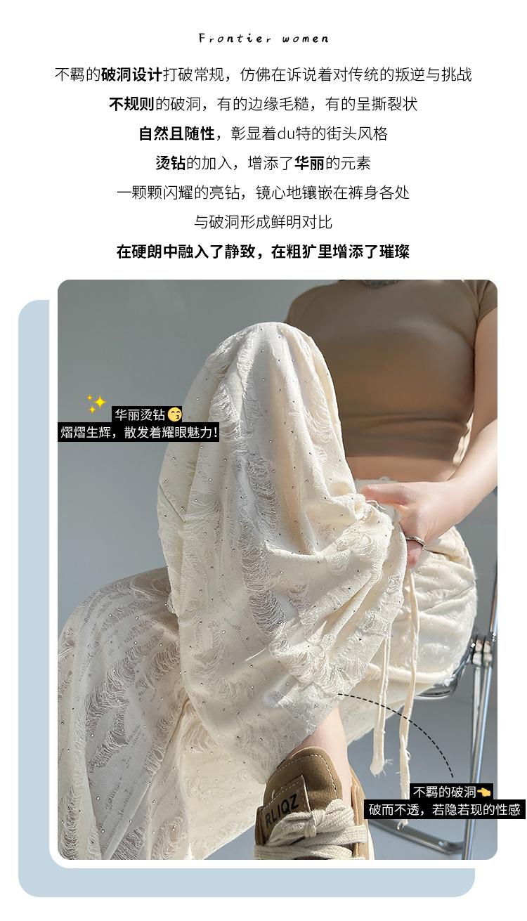 Pantalones rasgados de pierna ancha para mujer 2025 Verano Nuevo Estilo Seda de hielo Delgados Diamante Cintura alta Drapeados Casuales Rectos Hasta el suelo