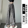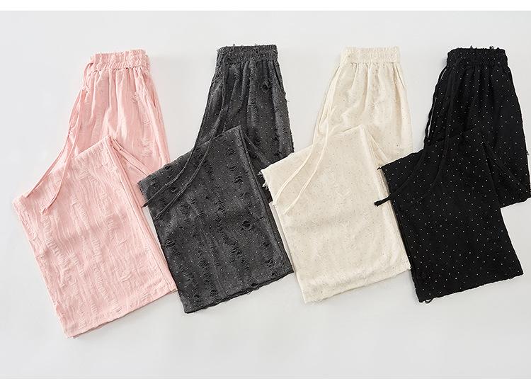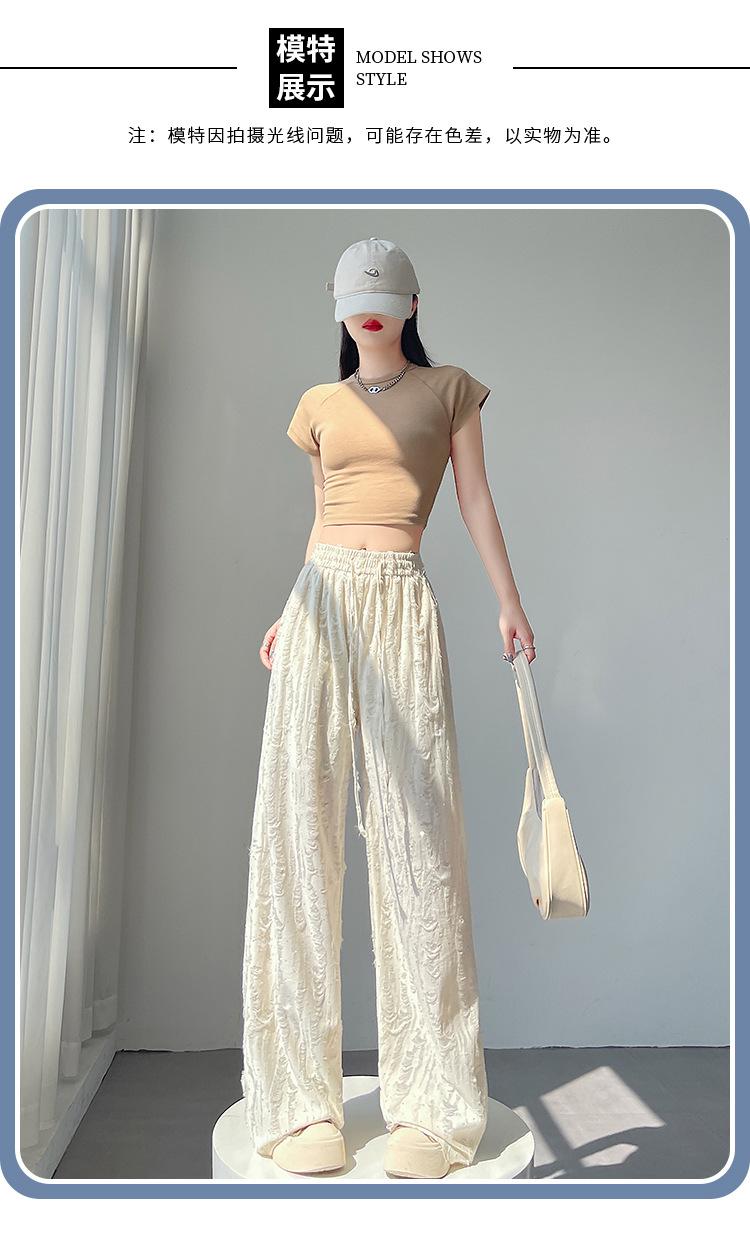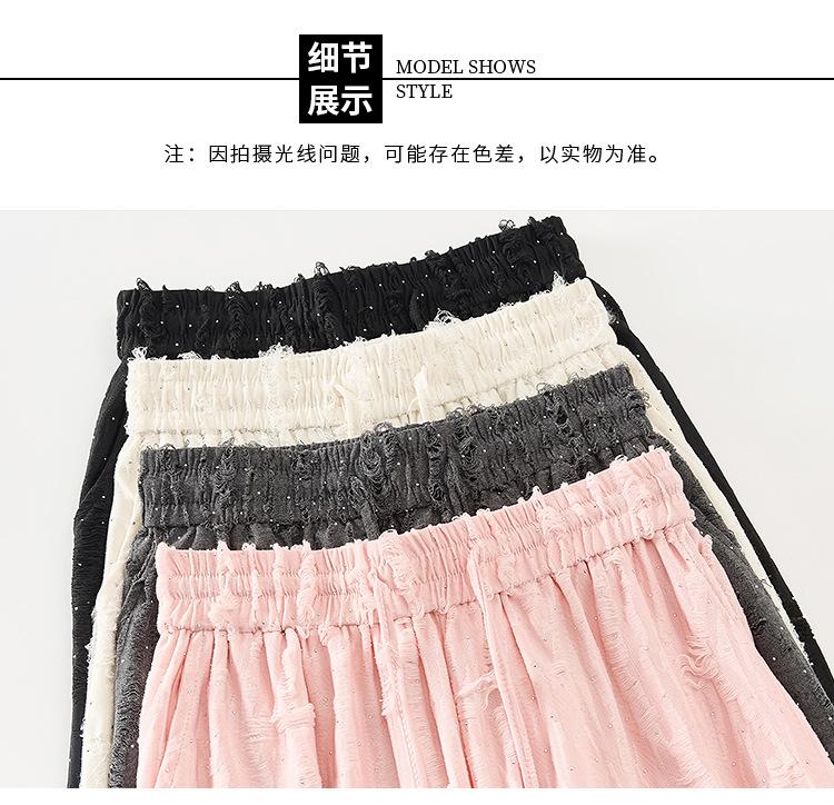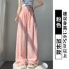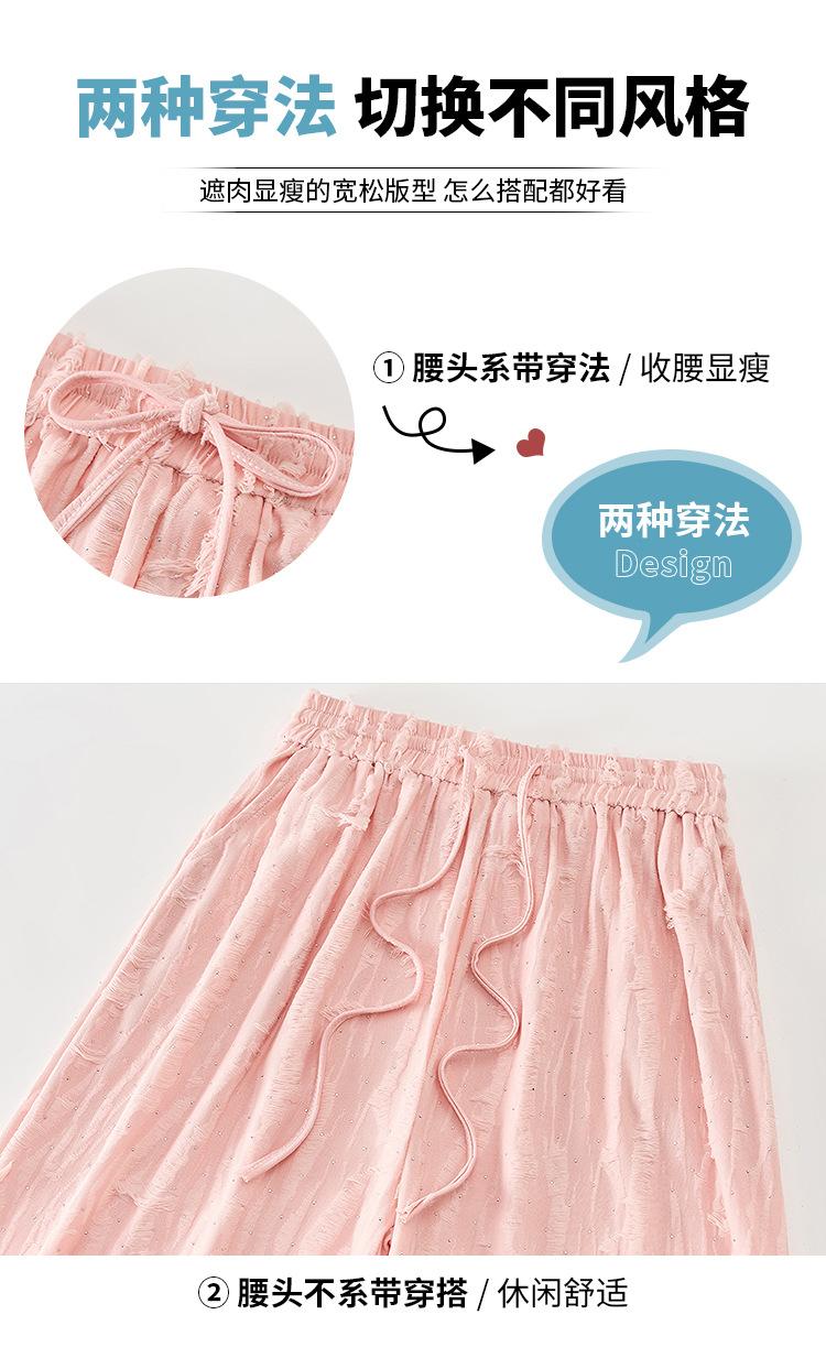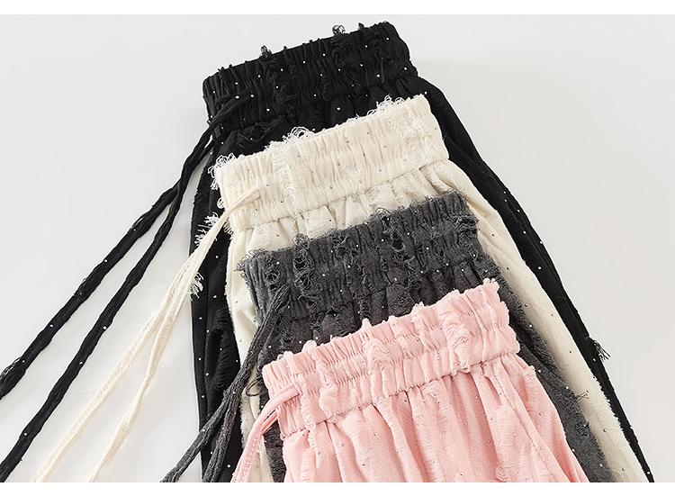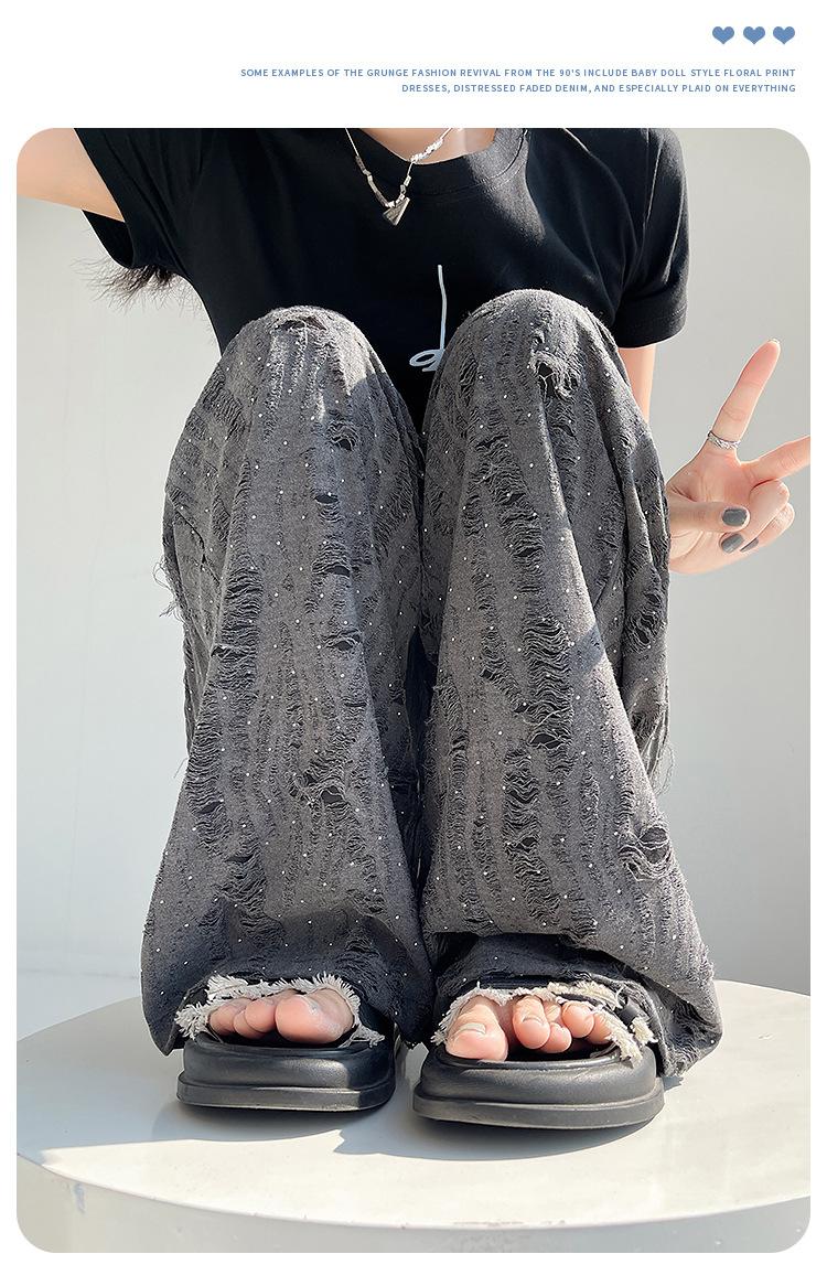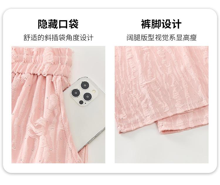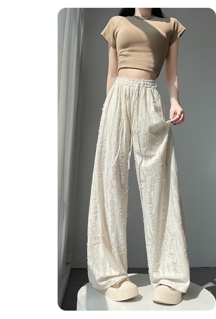 Pantalones rasgados de pierna ancha para mujer 2025 Verano Nuevo Estilo Seda de hielo Delgados Diamante Cintura alta Drapeados Casuales Rectos Hasta el suelo