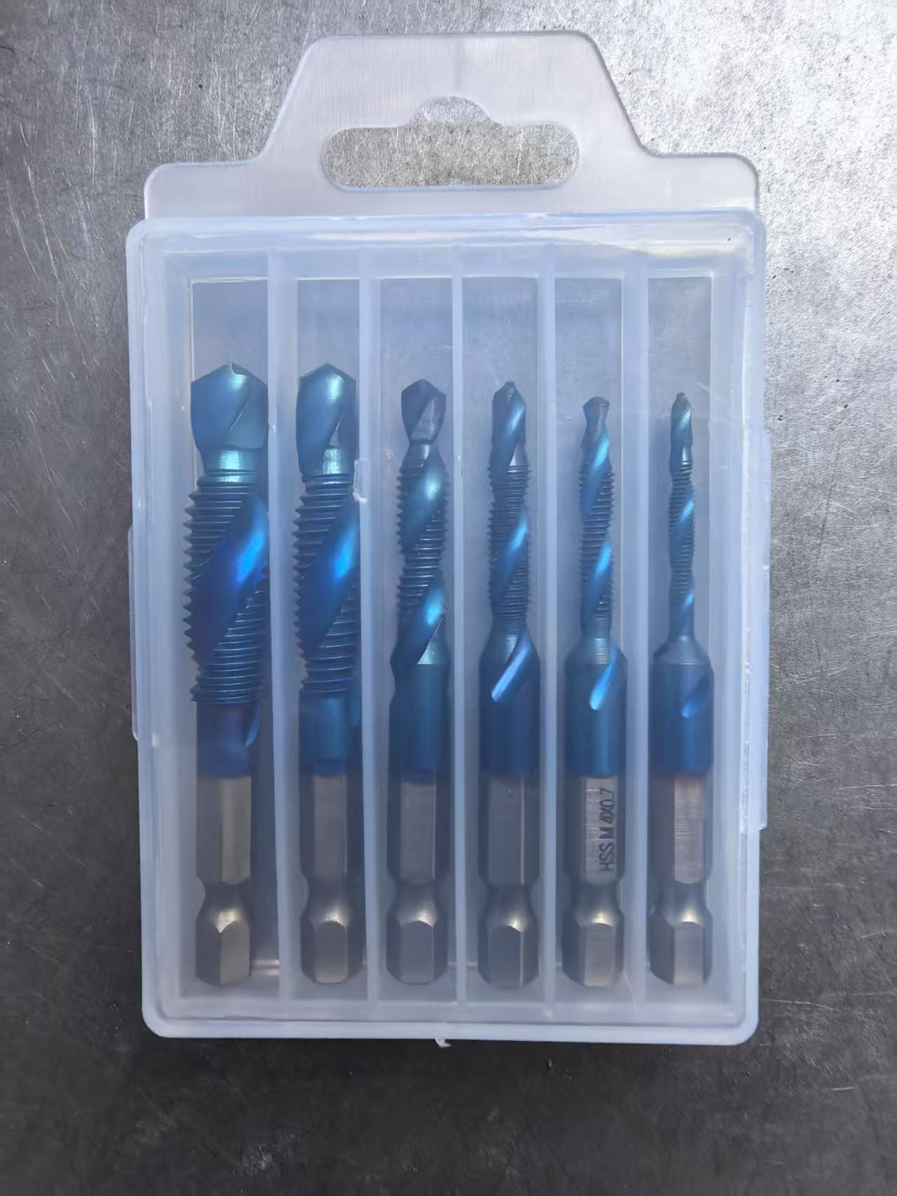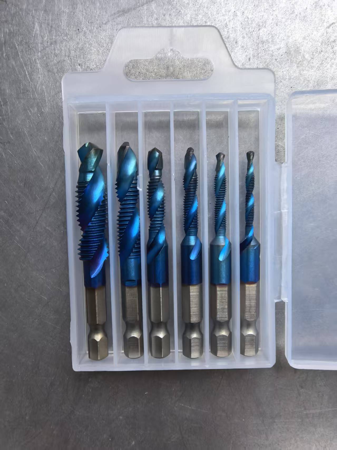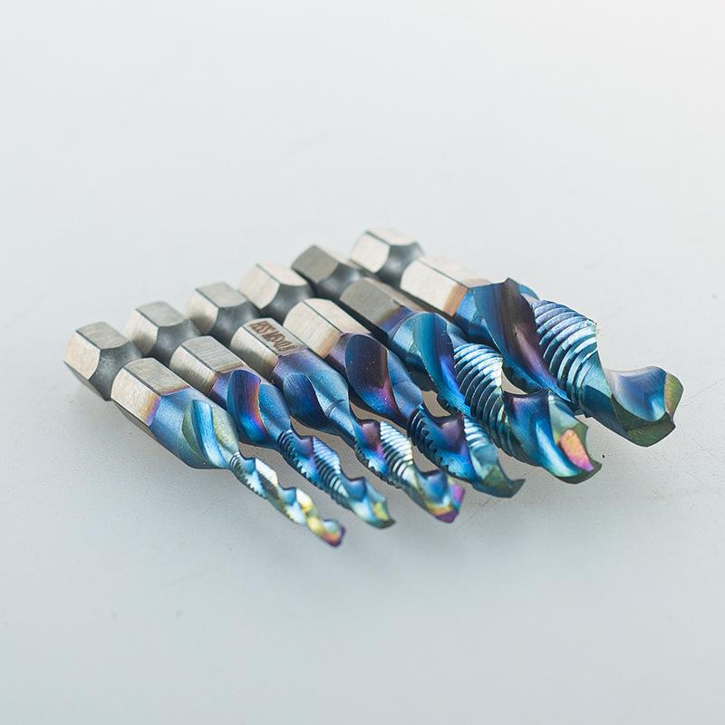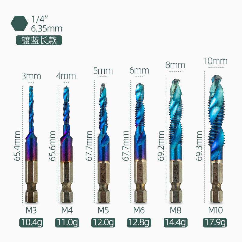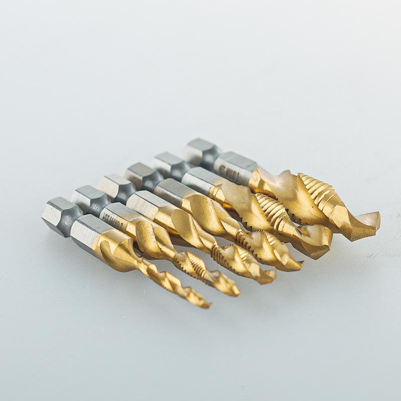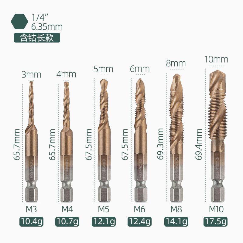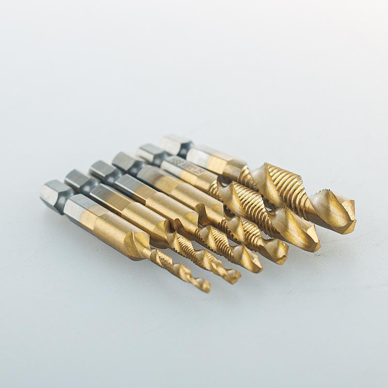 Broca de roscar avellanadora compuesta en espiral para máquina trío Yunbei de vástago hexagonal para taladrar, roscar y avellanar