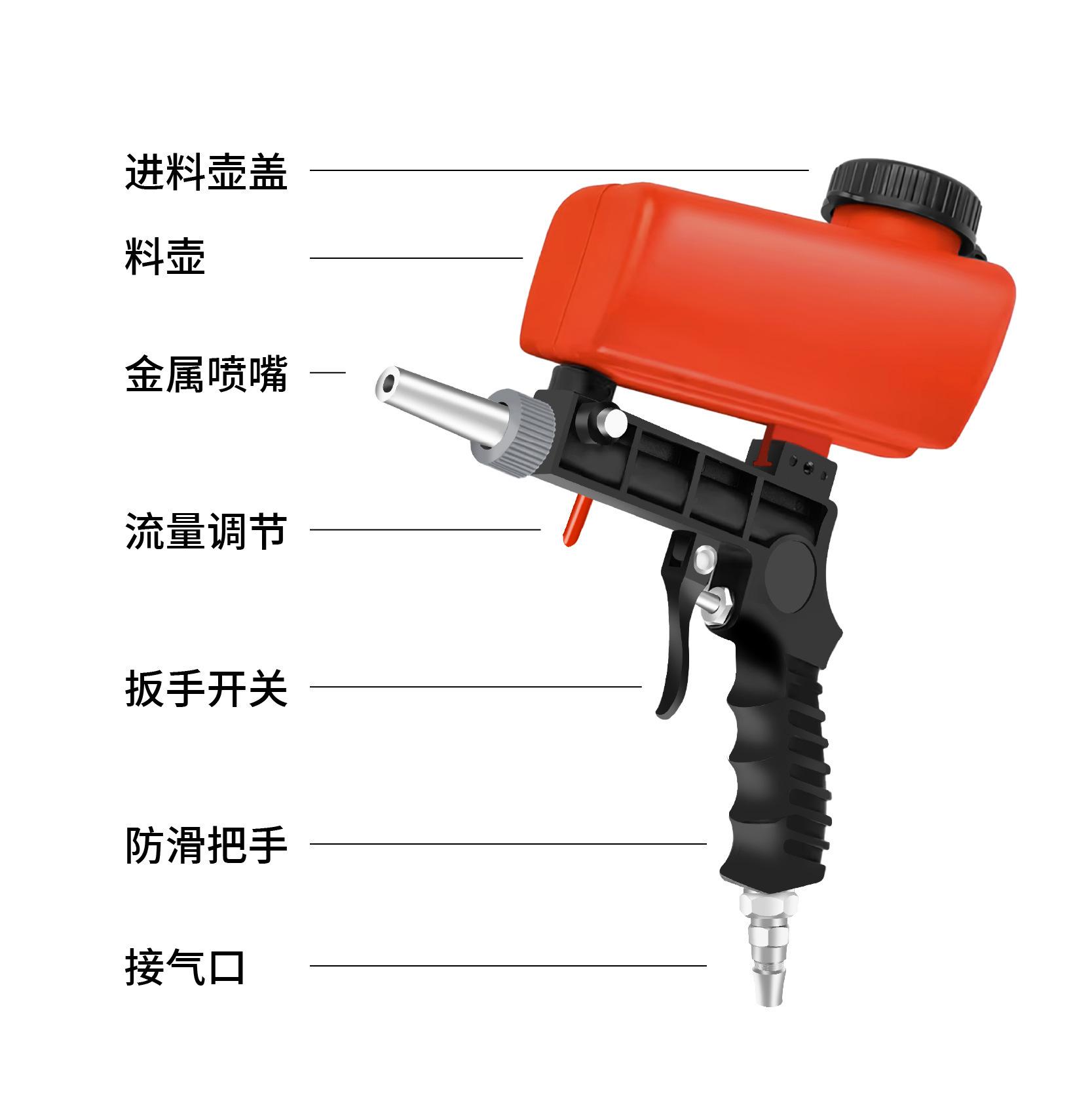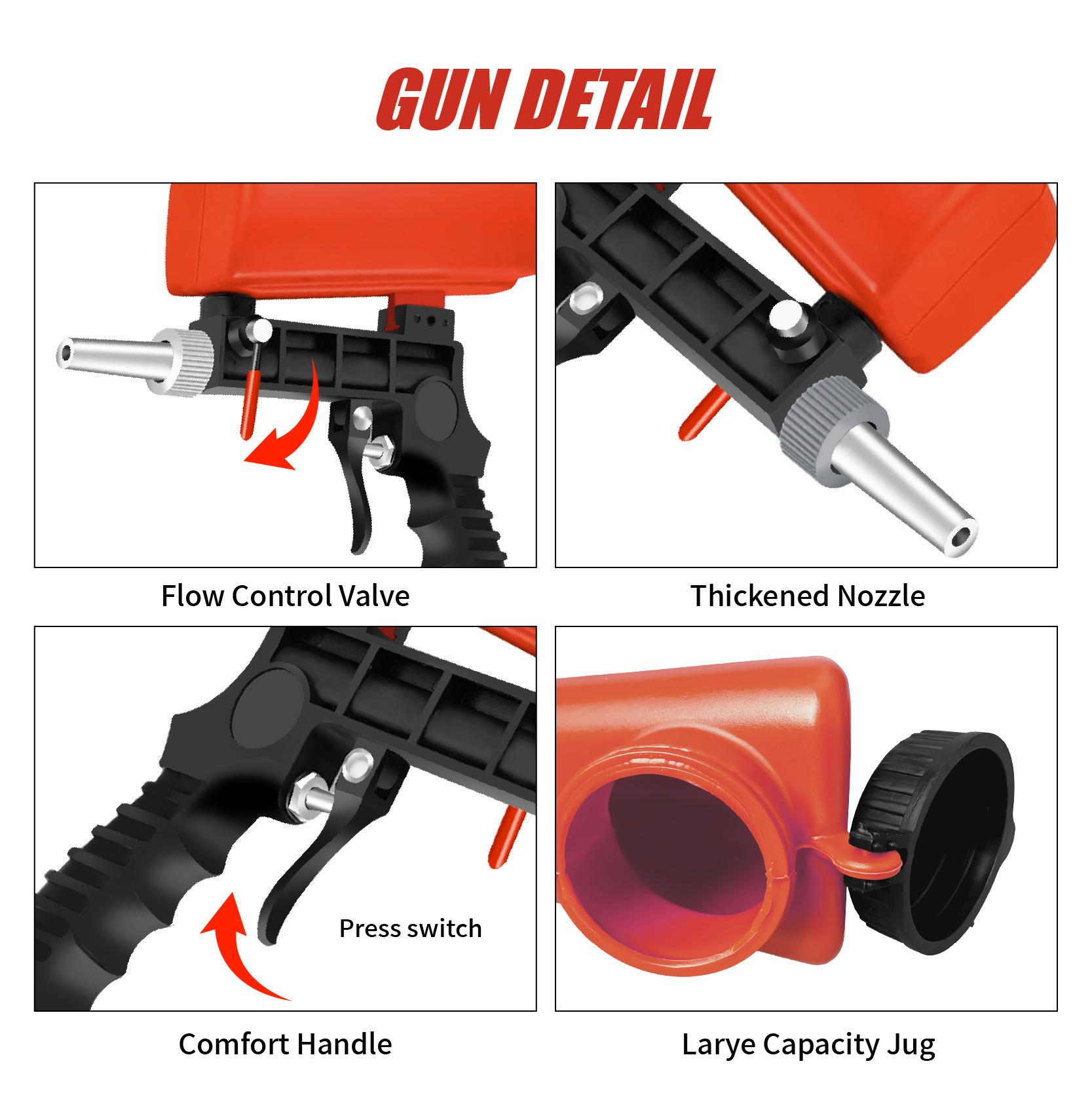 Juego de Chorro de Arena Neumático Anti-Óxido Eliminación de Óxido Chorro de Arena Máquina Pequeña de Chorro de Arena DIY Portátil Tipo Gravedad Pistola de Chorro de Arena Roja