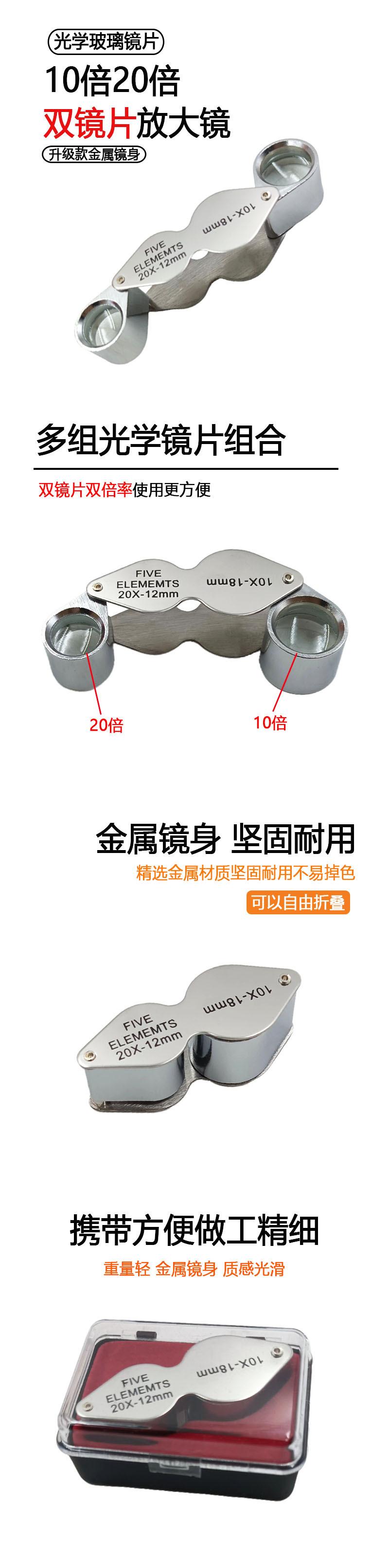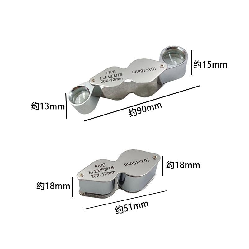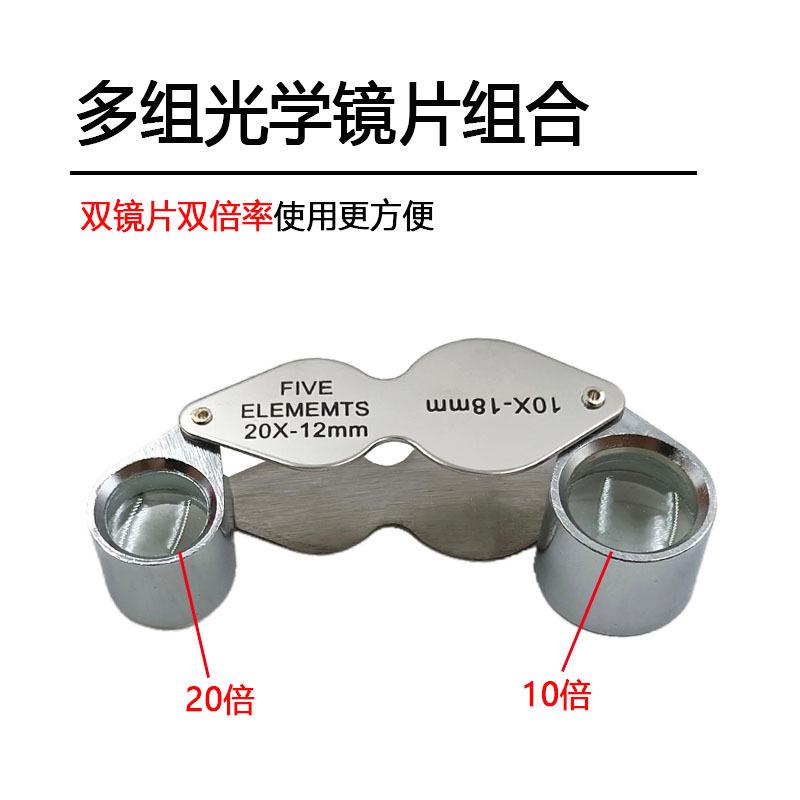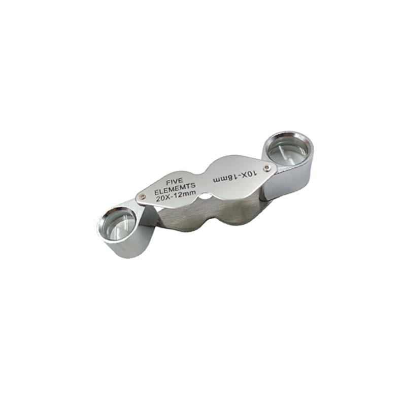 Lupa plegable de doble lente 10X 20X totalmente metálica, vidrio óptico, identificación de joyas antiguas, jade, monedas