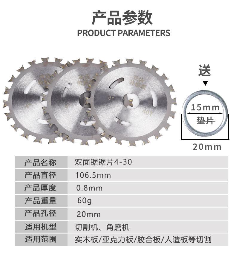 Hoja de sierra de doble cara carpintería máquina de mármol de doble cabezal amoladora angular grado profesional hoja de sierra circular bidireccional aleación corte de carpintería