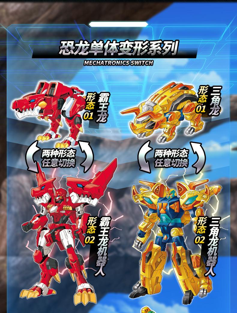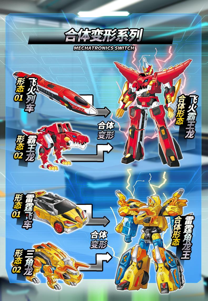 Luxurious transformed flame tyrannosaurus rex, Luxurious transformed thunder triceratops, Luxurious transforme...