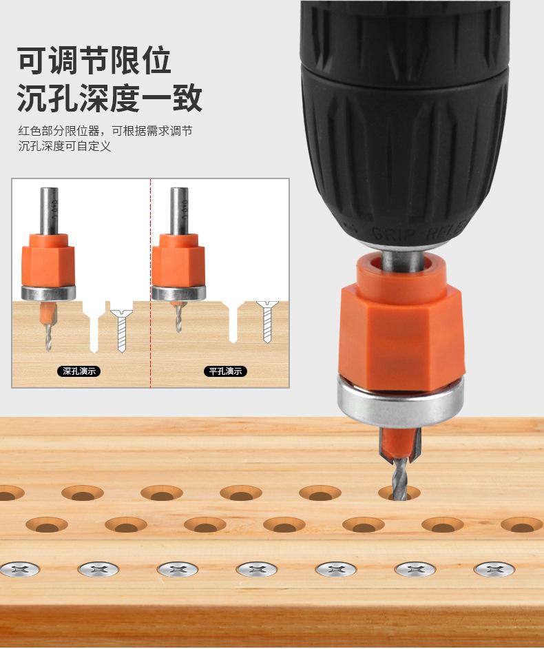 Taladro avellanado con límite para carpintería, dos en uno, nuevo escariador, taladro escalonado, tornillo oculto, tope de broca avellanada