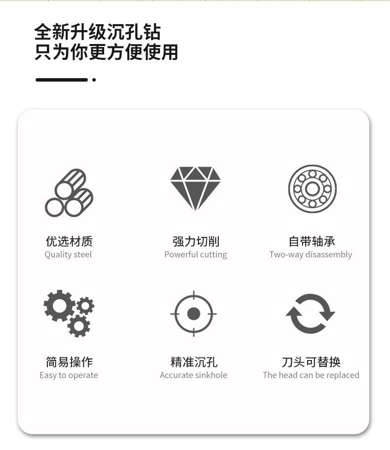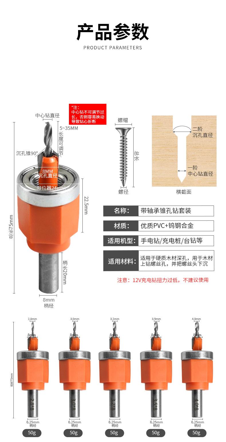 [round handle] limited slot countersink drill bearing type 6-piece set