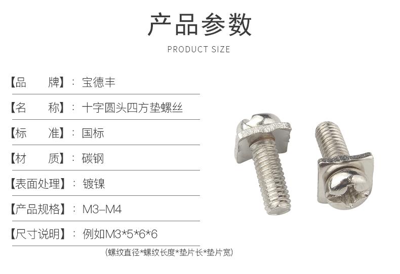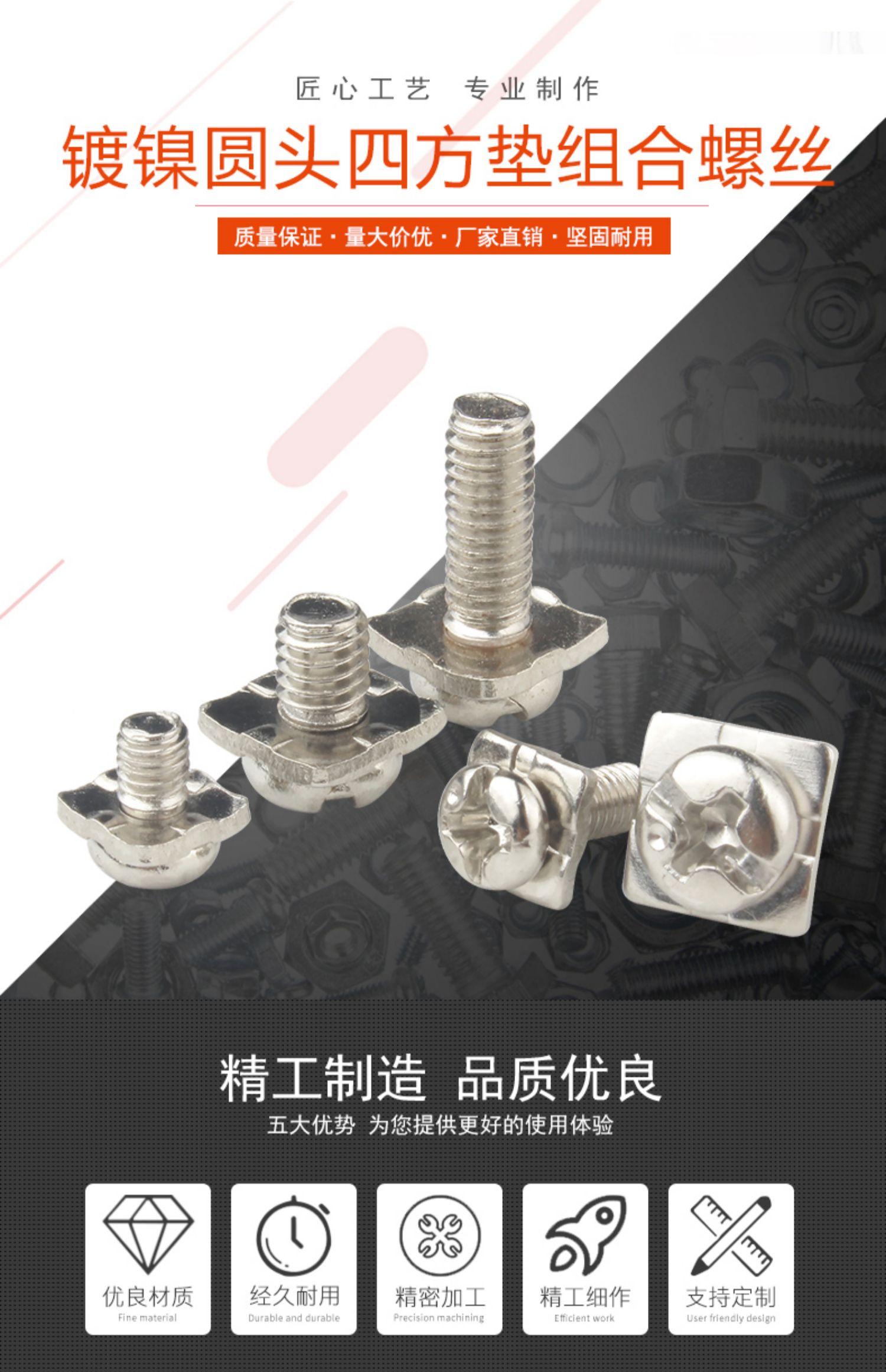 . Tornillo de combinación de cabeza redonda cruzada niquelado cuadrado dos cabeza de sartén con arandela plana perno de combinación de tornillo M3/M3.5/