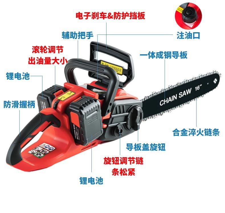 Sierra Eléctrica de Litio Inalámbrica de 16 pulgadas Sierra Eléctrica de Cadena Recargable Sierra de Alta Potencia para Tala Sierra Portátil para Carpintería con Batería de Litio