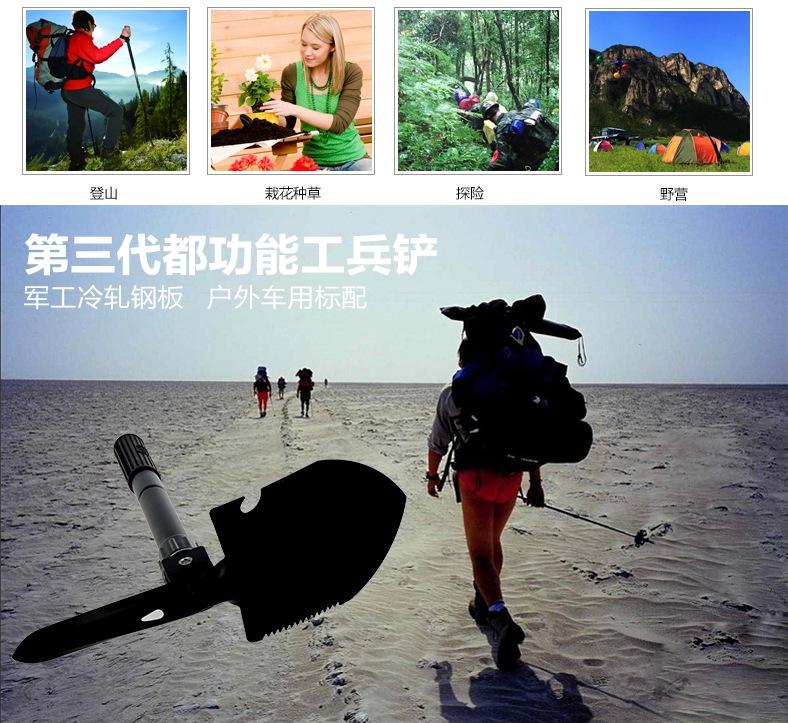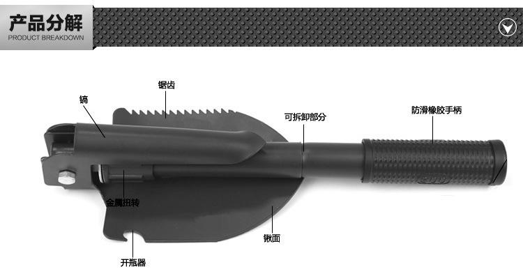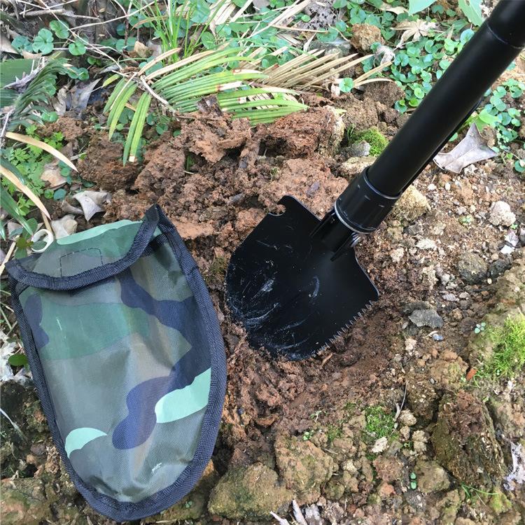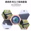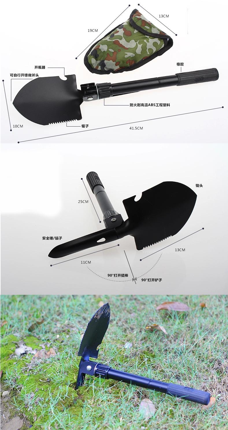 Características: Múltiples usos, ideal para camping, acampada, montañismo, exploración, viajes, jardinería doméstica, investigación científica y otras actividades al aire libre. Funciona como pala, pico, sierra, extractor de clavos, etc.