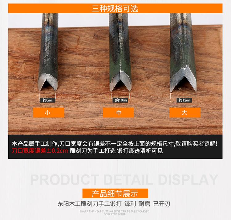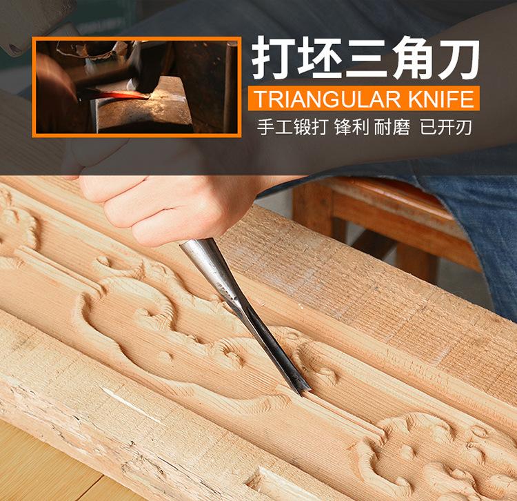 Herramienta de tallado cuchillo de tallado de madera hecho a mano cuchillo triangular cuchillo en blanco tallado de madera tallado de raíz yabei cuchillo de tallado cuchillo de tallado de Dongyang Carpintería