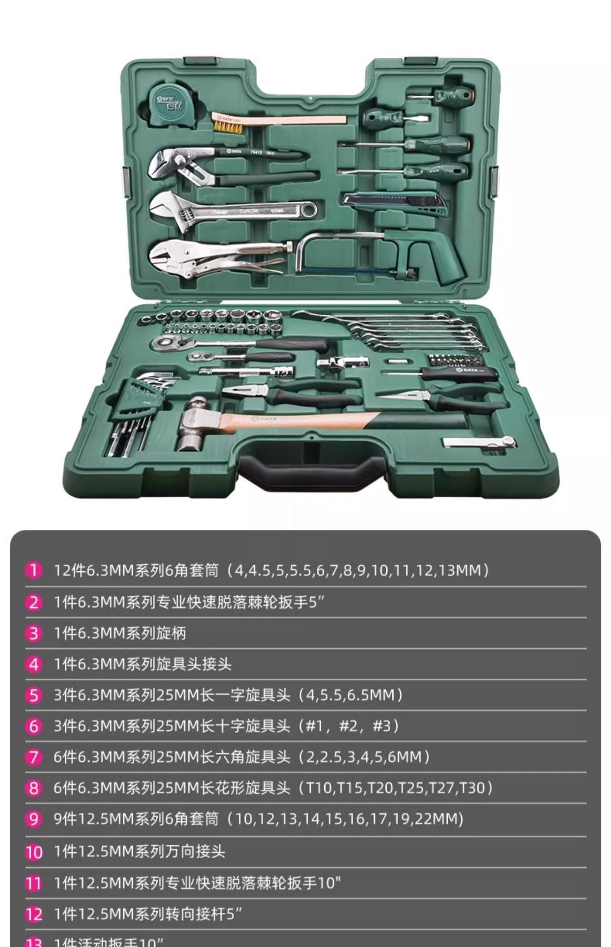 Juego de herramientas Shida de 58 piezas, juego de llaves de vaso combinadas para mantenimiento de equipos mecánicos, juego de herrajes para reparación de máquinas 09516