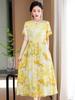 Vestido de Algodón Seda Marca para Mediana Edad y Ancianas Verano 2025 Nuevo Floral Clásico Elegante Falda de Madre
