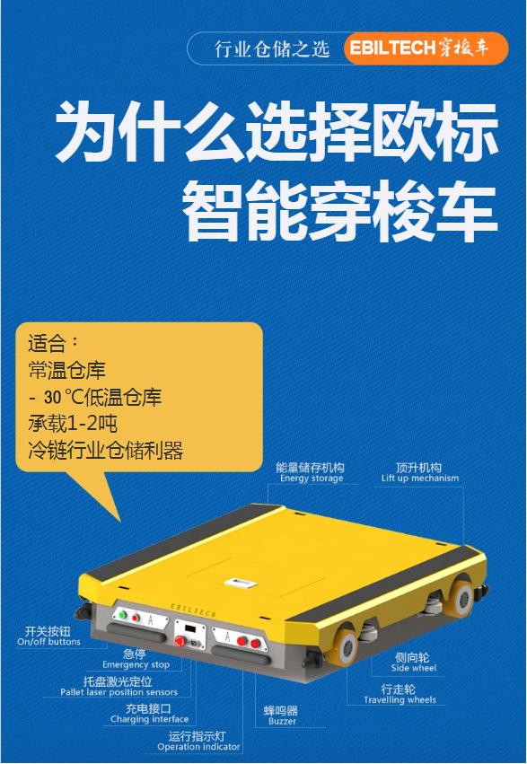 Estándar Europeo Inteligente Camión Lanzadera Ebiltech Fabricante de Tabla Lanzadera Personalizada Almacén a Temperatura Ambiente Almacén de Almacenamiento en Frío Robot