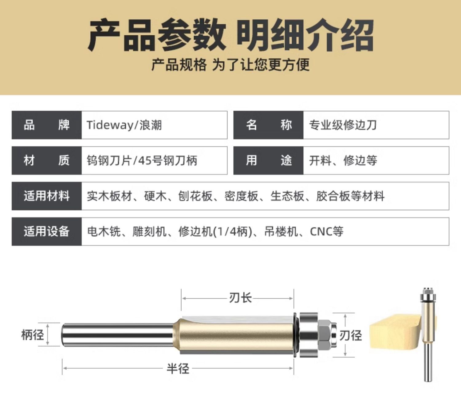 Herramientas para carpintería Cuchillo de recorte con rodamiento Cuchillo recto de doble filo Máquina grande Gong Grabado Máquina de recorte Cabezal de cuchillo Fresa completa