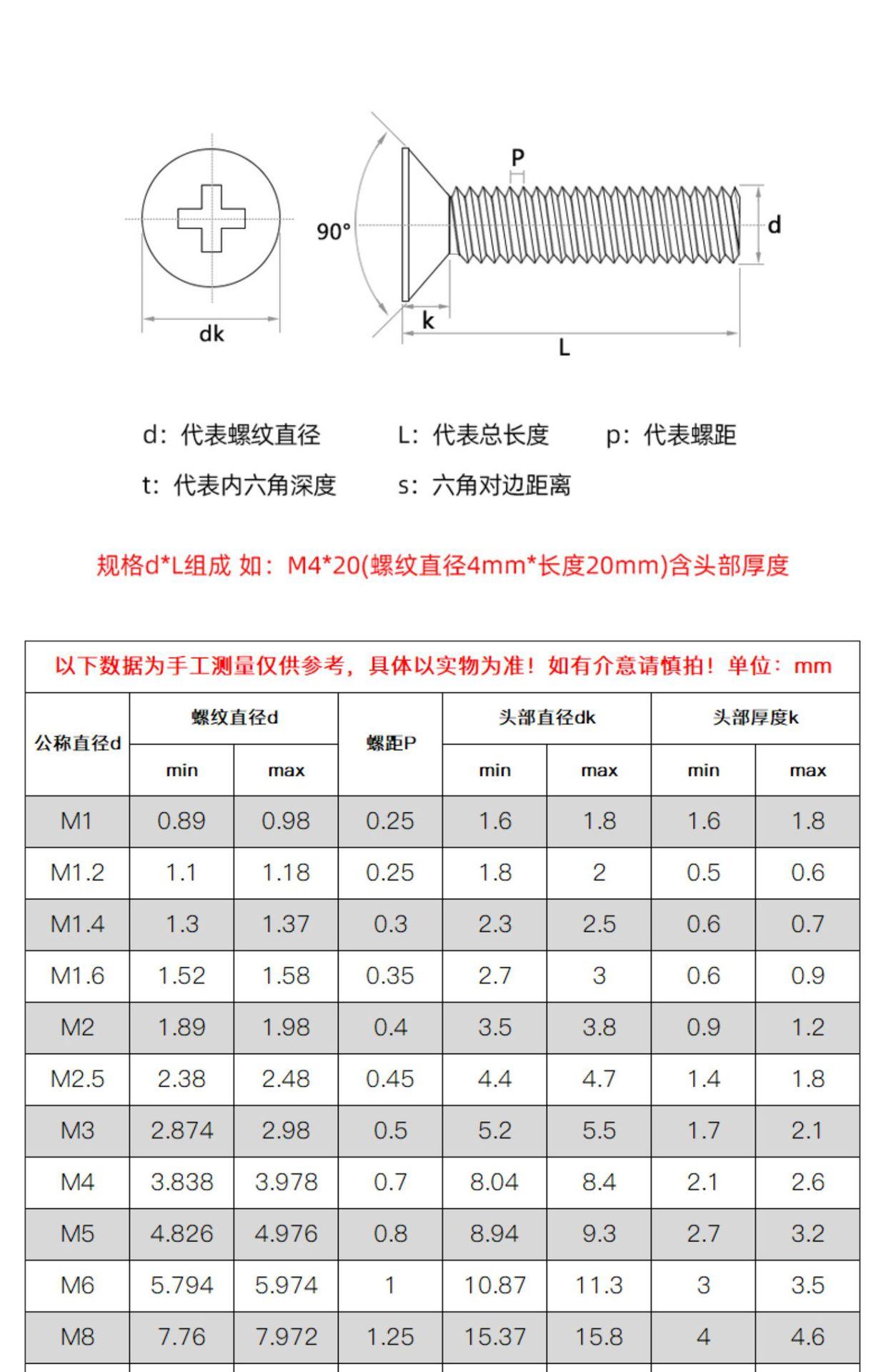 Tornillos de Cabeza Avellanada Cruzada de Acero Inoxidable 304, Tornillos de Máquina de Cabeza Plana, Tornillos para Madera y Pernos [M1M3M4M5-M10]