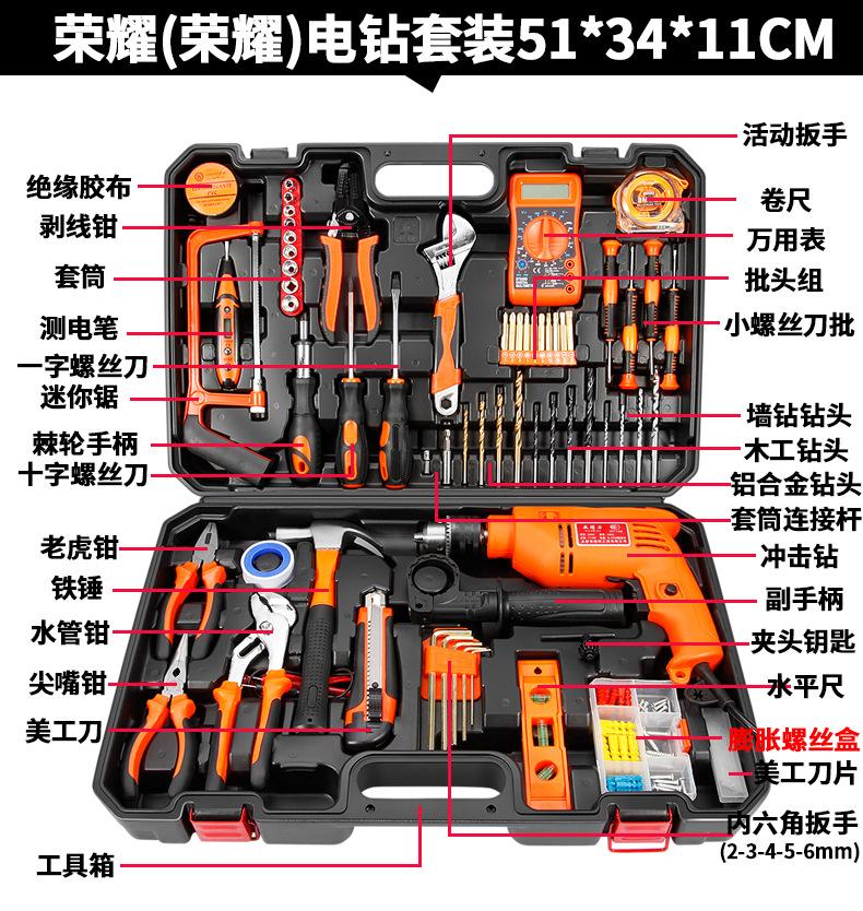 Juego de Herramientas Manuales para el Hogar Herramientas Ferretería Electricista Carpintería Combinación Función Caja de Reparación Caja Taladro Eléctrico
