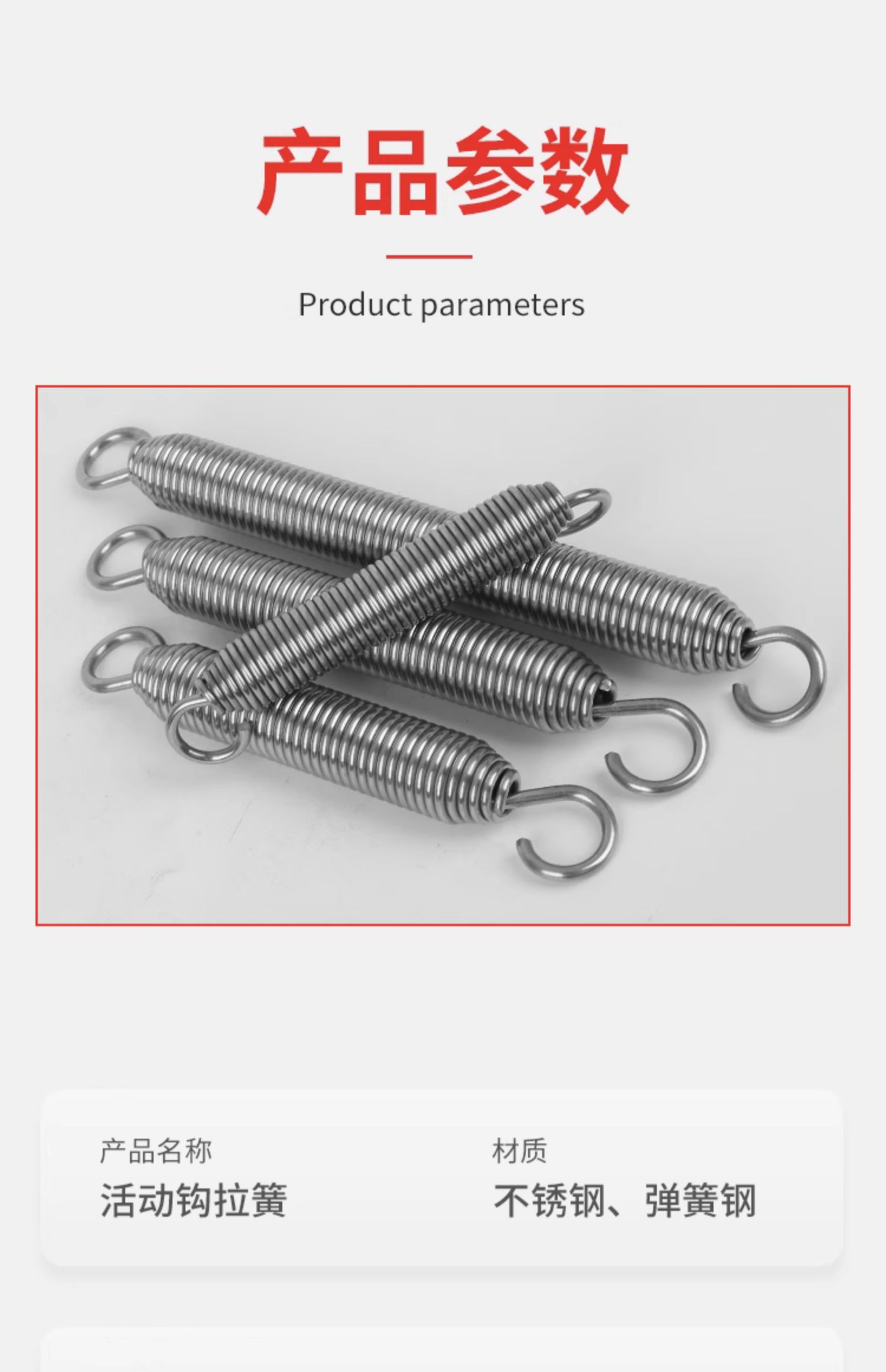 Resorte de Tracción Resorte de Gancho Universal con Gancho, Resorte de Tracción de Gancho de Acero Inoxidable Hecho a Medida