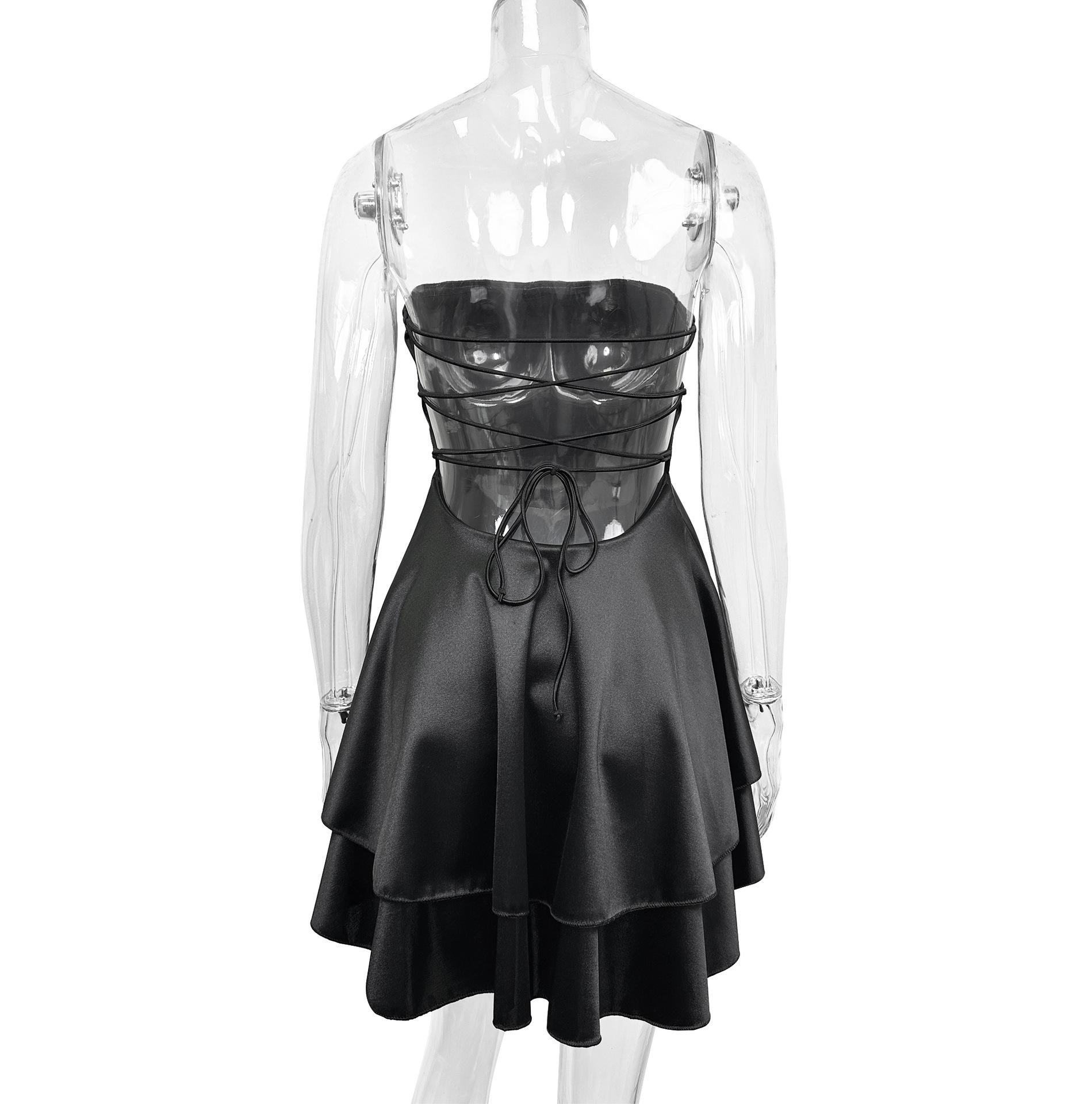 2025 Verano Transfronterizo para Mujer Nuevo Estilo Moda Encaje Espalda Descubierta Europeo y Americano Sexy Vestido Irregular Europeo y Americano