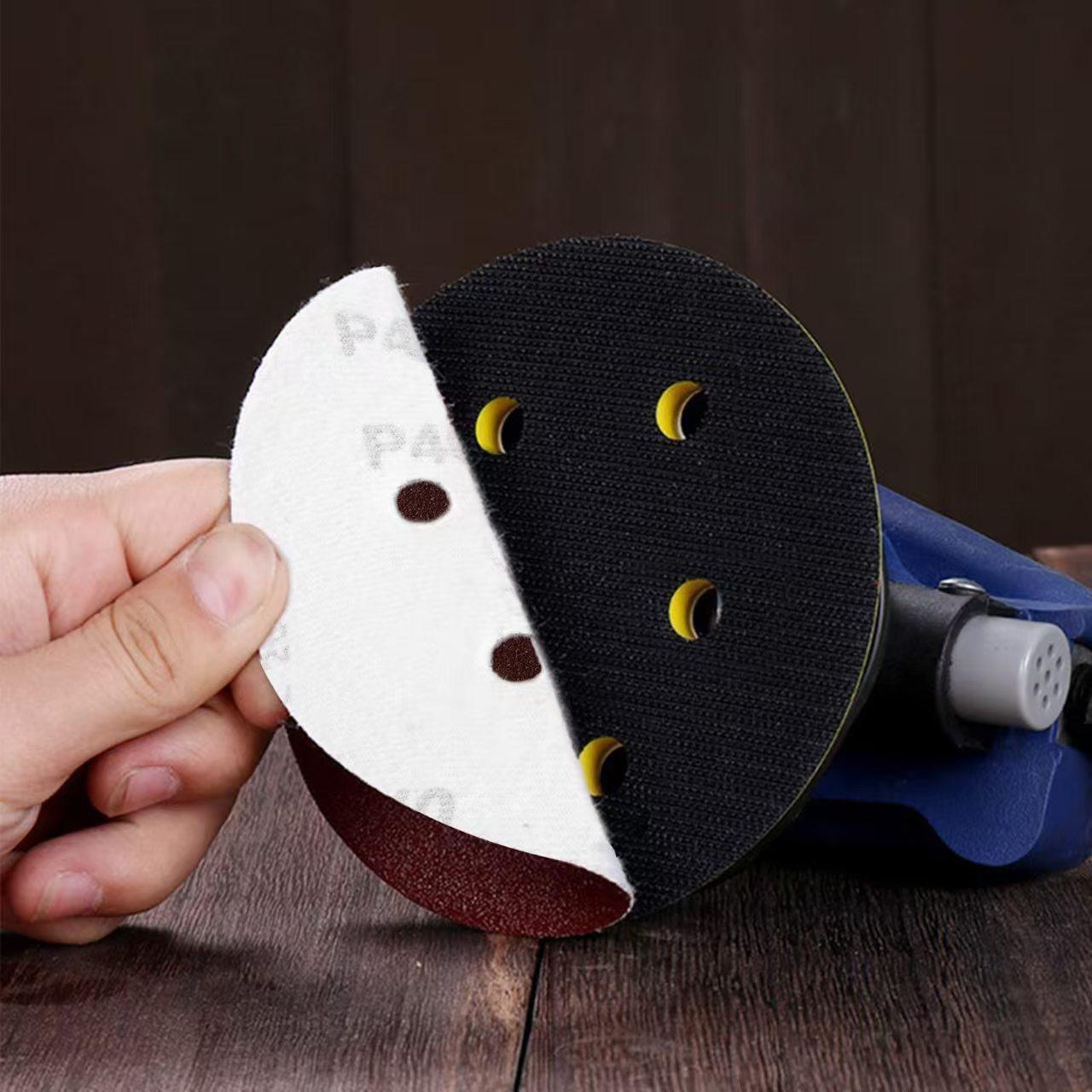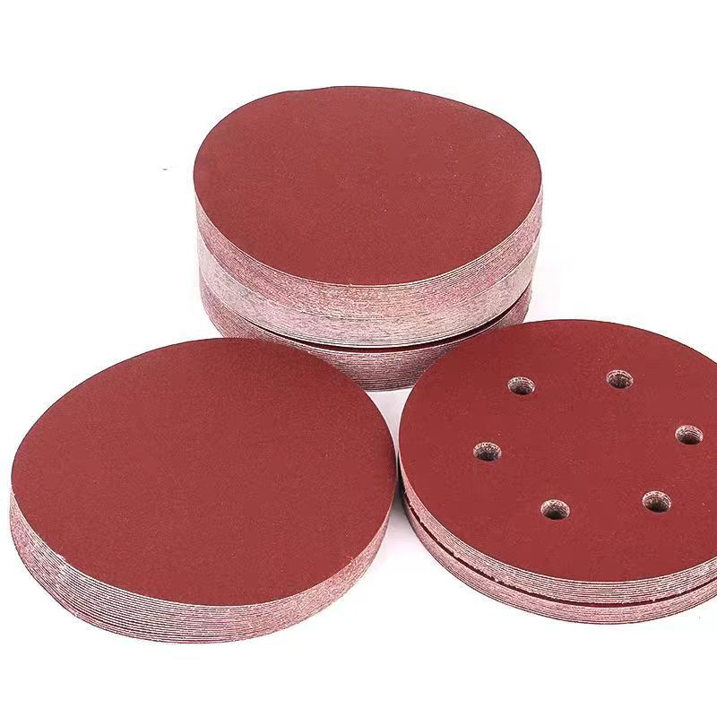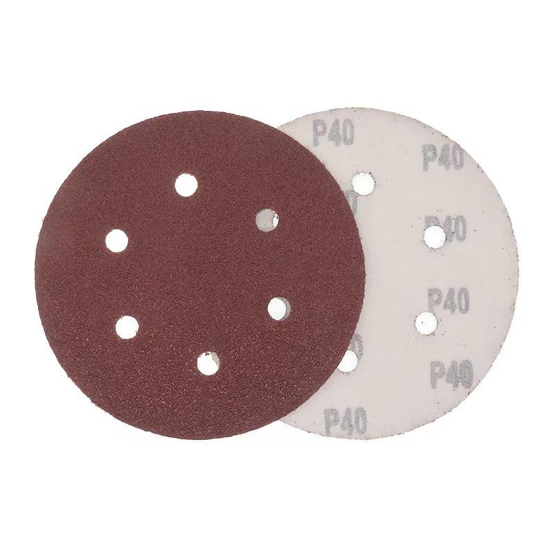 Papel de lija flocado de 6 pulgadas y 6 agujeros al por mayor 150 mm Disco con respaldo de terciopelo Hoja de pulido autoadhesiva Pulido Rojo Lija lijada