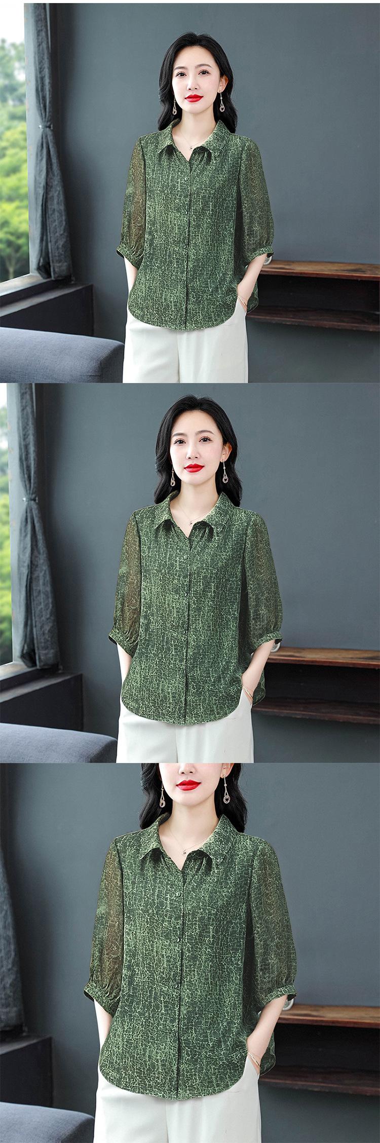 Camisa de Gasa para Mamá Mujer 2025 Verano Nueva Moda Reductora de Edad Camisa de Mujer Elegante Manga Corta Talla Grande Top