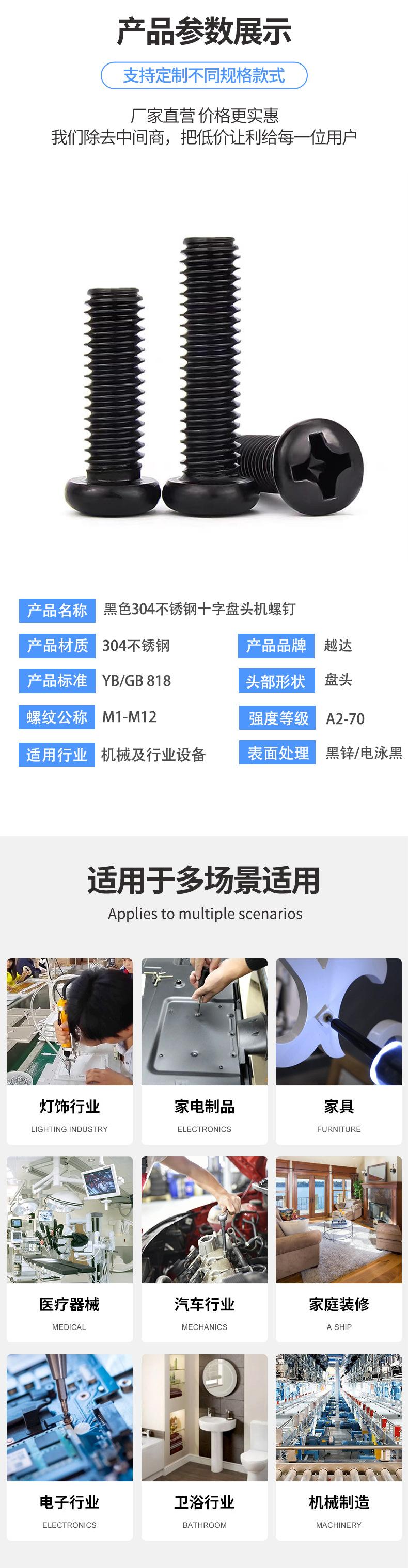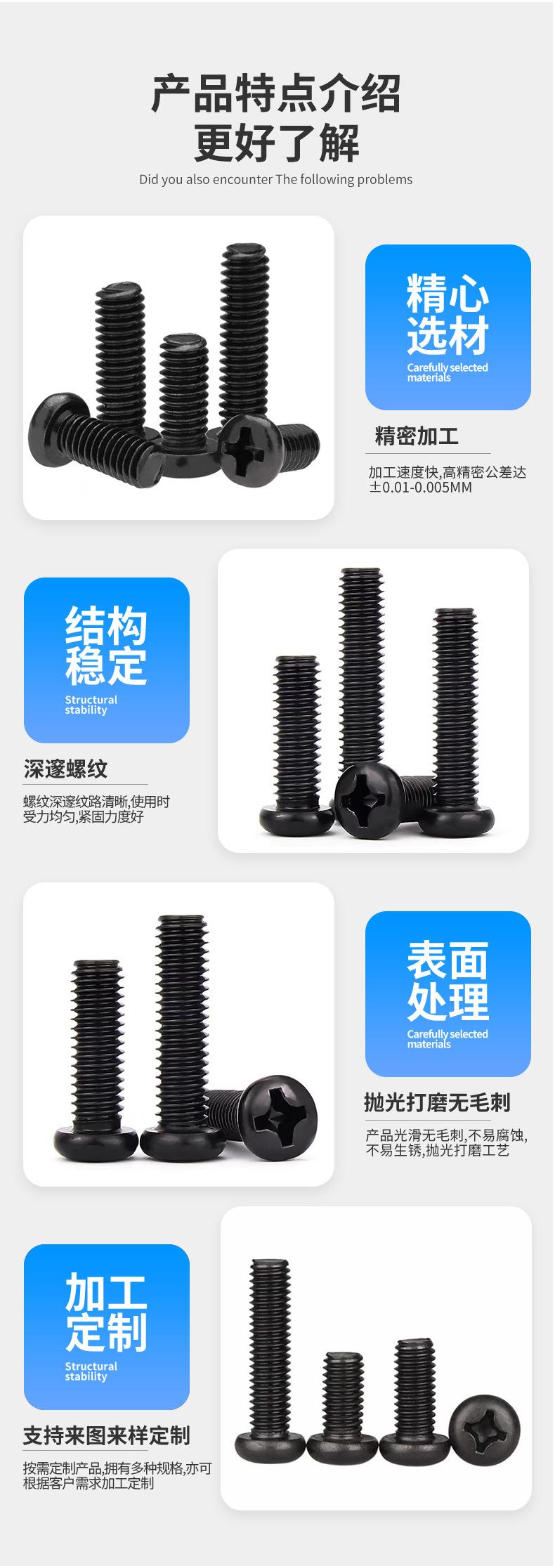 Tornillos de Máquina de Cabeza Redonda Phillips de Acero Inoxidable 304 Cincado Negro Gb818 Tornillos de Cabeza Redonda Phillips Negros M1-M12