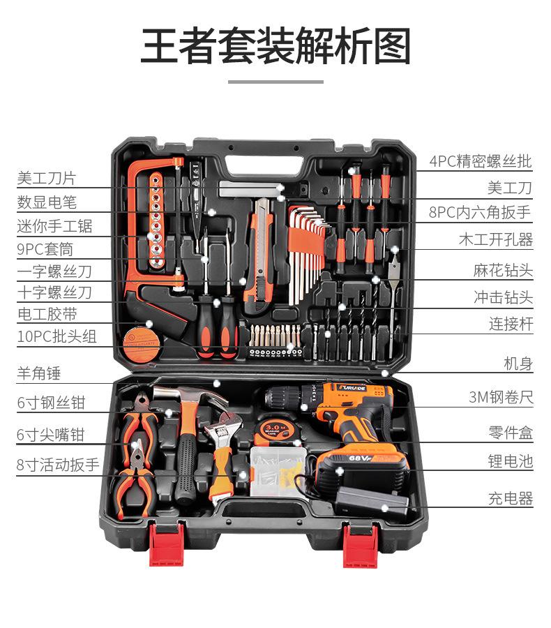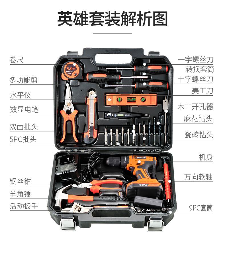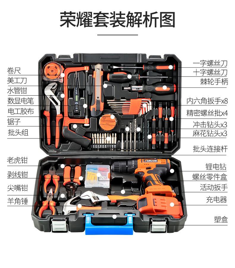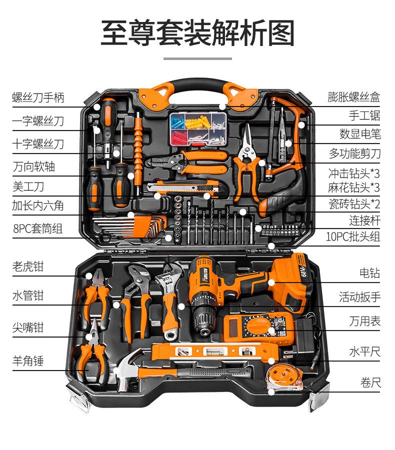 Caja de Herramientas Juego para el Hogar Multifuncional Ferretería Electricista Reparación Combinación Juego Completo de Almacenamiento para Taladro Eléctrico de Coche
