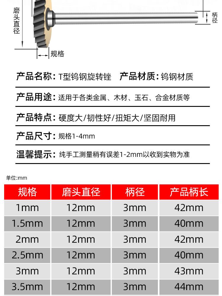 Fresa Tipo T Fresa para Ranurar Fresa Rotativa de Carburo 3mm Acero Tungsteno Cabezal de Rectificado Fresa para Ranurar Cabezal de Rectificado Eléctrico Herramienta Cabezal de Rectificado