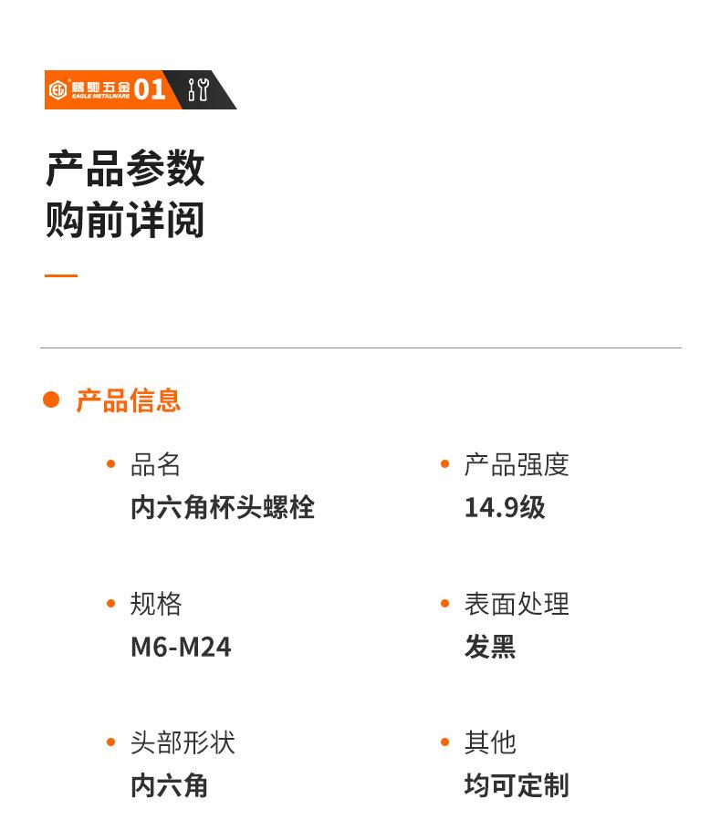 EGM Pengchi Grado 14.9 Tornillo de Cabeza Hueca Hexagonal de Alta Resistencia Perno Súper Duro de Alta Resistencia M6-M24 Cilindro
