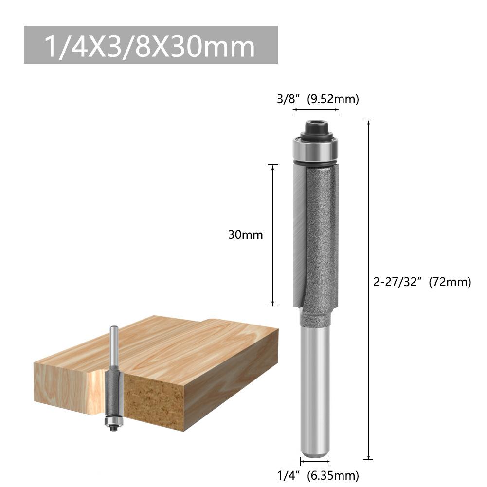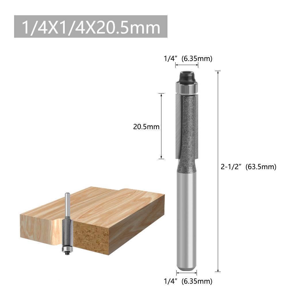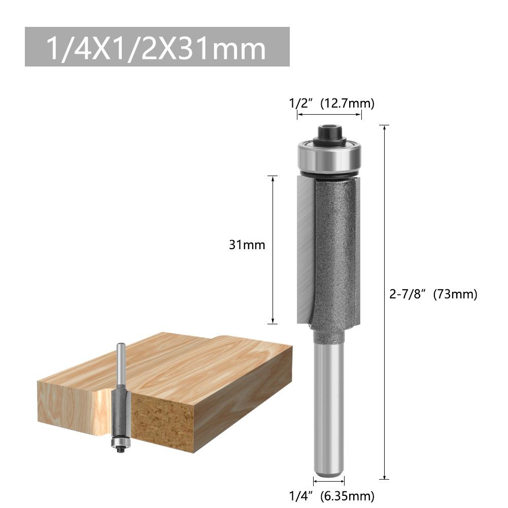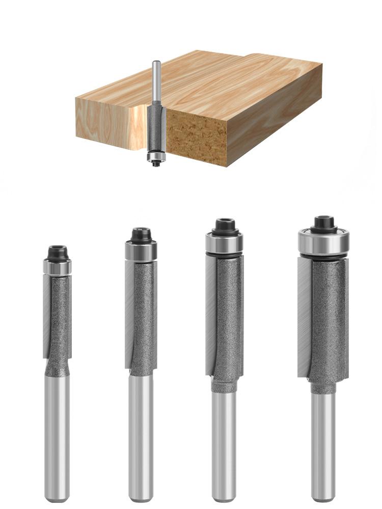 Los mangos de las fresas para carpintería son: 3 mm, 6 mm, 1/4" (6,35 mm), 8 mm, 12 mm, 1/2" (12,7 mm)