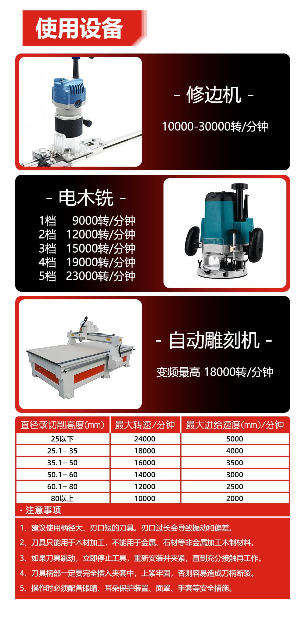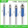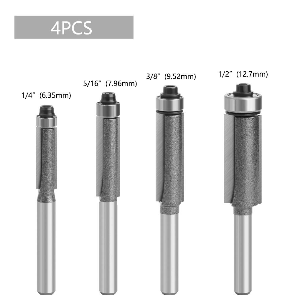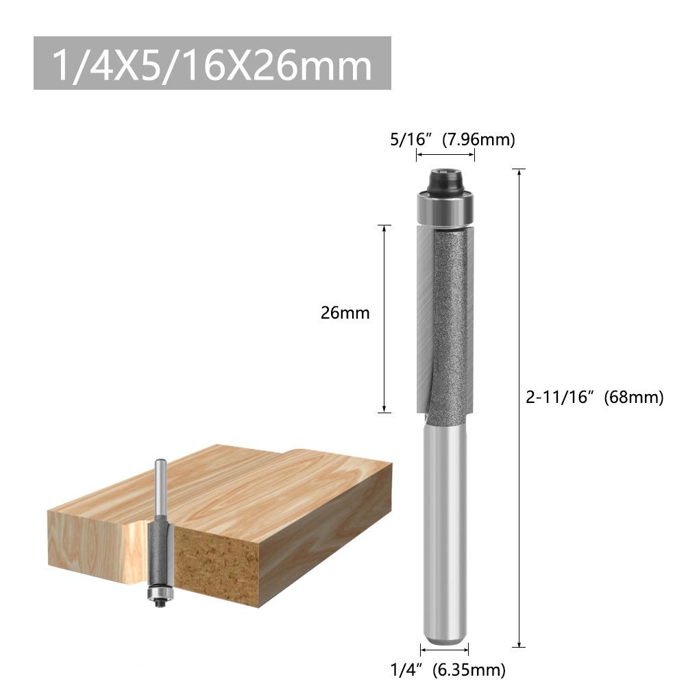 Los mangos de las fresas para carpintería son: 3 mm, 6 mm, 1/4" (6,35 mm), 8 mm, 12 mm, 1/2" (12,7 mm)