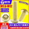 Tornillo de cabeza redonda hexagonal de acero inoxidable 304, dorado, con cabeza plana y hexágono interior, chapado en oro, M3M4M5M6M8