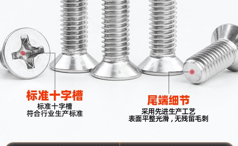 Tornillos de Acero Inoxidable 316 Tornillos de Cabeza Avellanada Cruzada Venta al por Mayor Tornillos de Cabeza Plana Tornillos de Máquina M2M3M4M5M6M8M10