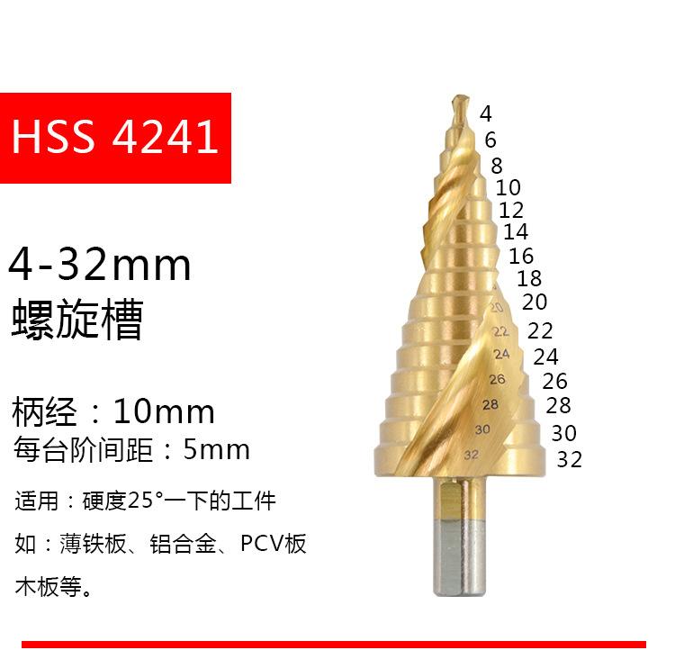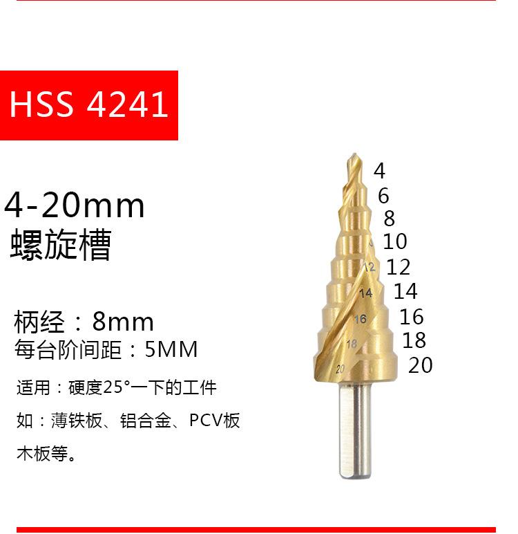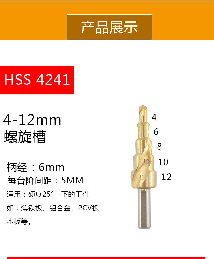 nombre:Broca escalonada de acero rápido 4241 con ranura en espiral chapada en titanio