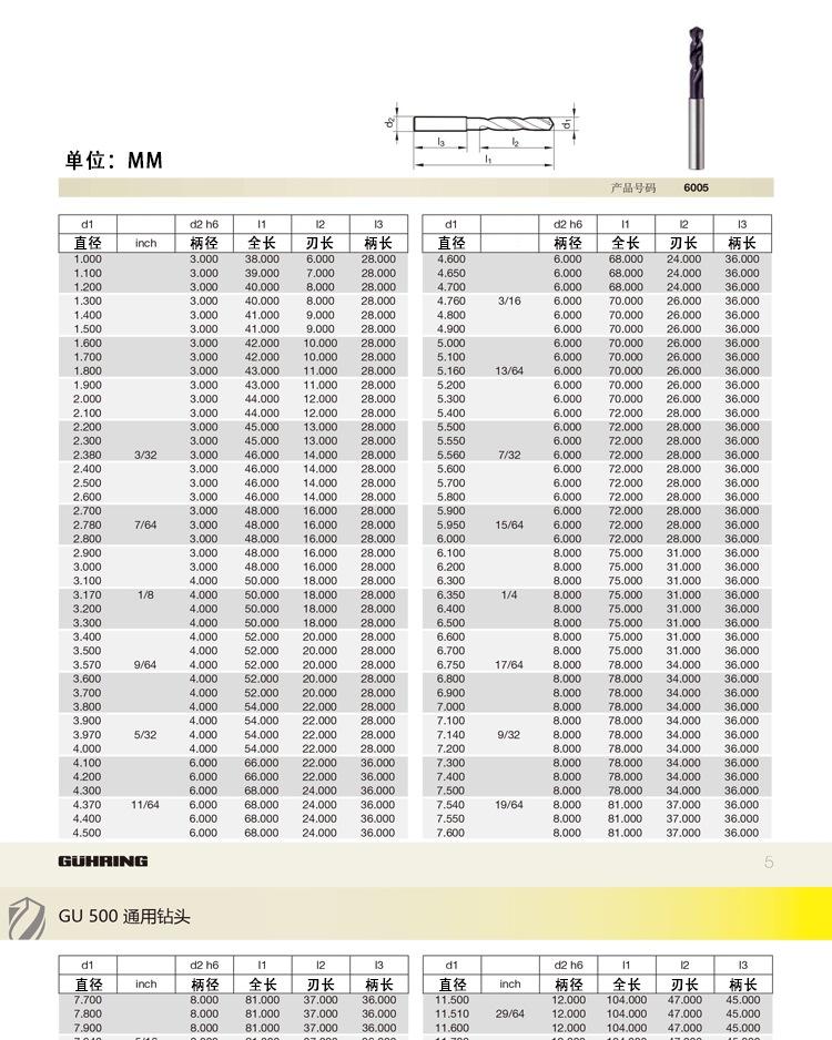 Broca Cobalt Collar 6005 Polvo Súper Dura Acero Aleado Inoxidable Acero Aleado Aleación de Titanio con Broca Guhring
