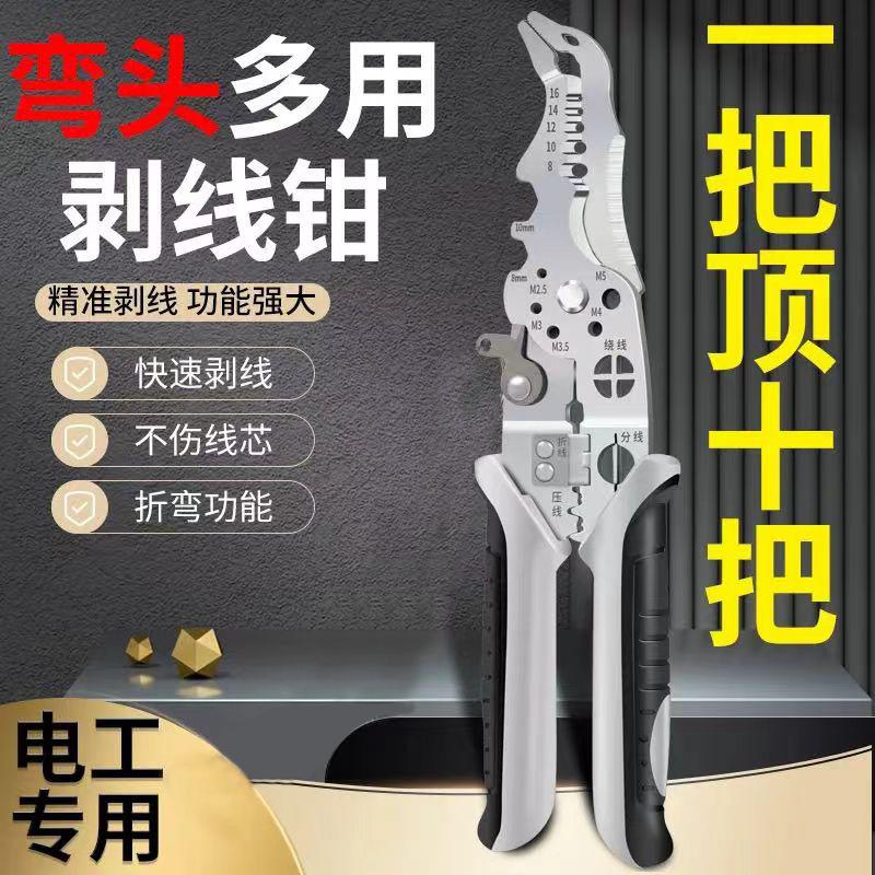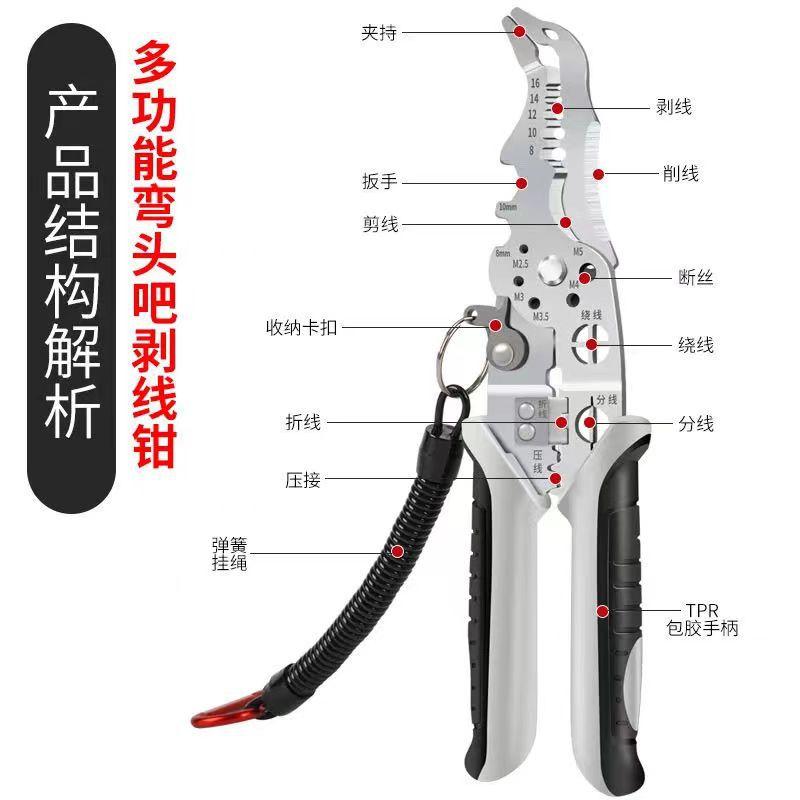 Multifunctional curved nose wire stripper, Multifunctional elbow wire stripper, Multifunctional wrench wire stripper