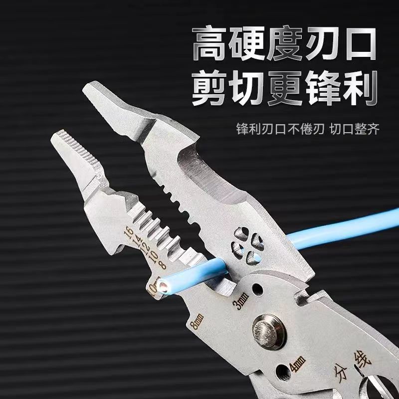 Pelacables de Codo Alicates Multifuncionales para Electricista Especiales para Pelar, Crimpar, Pelar y Cortar Cables Acero al Cromo Vanadio Conductor