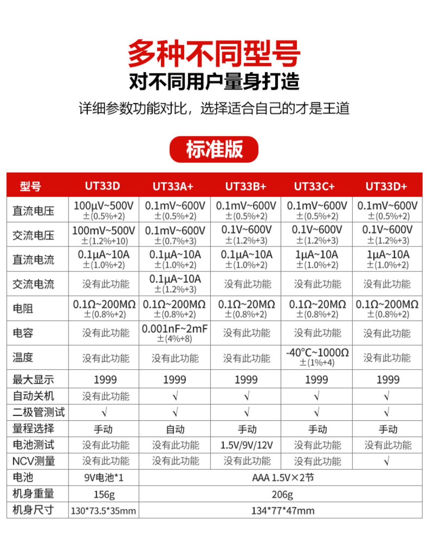 Classic version of ut33a+ (+ comes with 5 original fuses + alligator clips), Classic version ut33b+ (+ comes w...