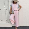 Conjunto de Dos Piezas de Verano Nuevo 2025 para Mujer Europeo y Americano Trendy Versátil Suelto Jersey Cuello Redondo Traje Casual para Mujer