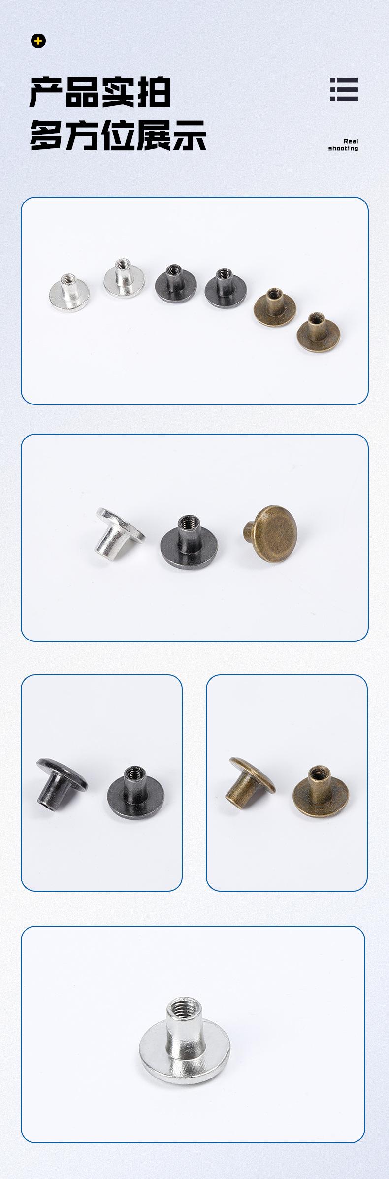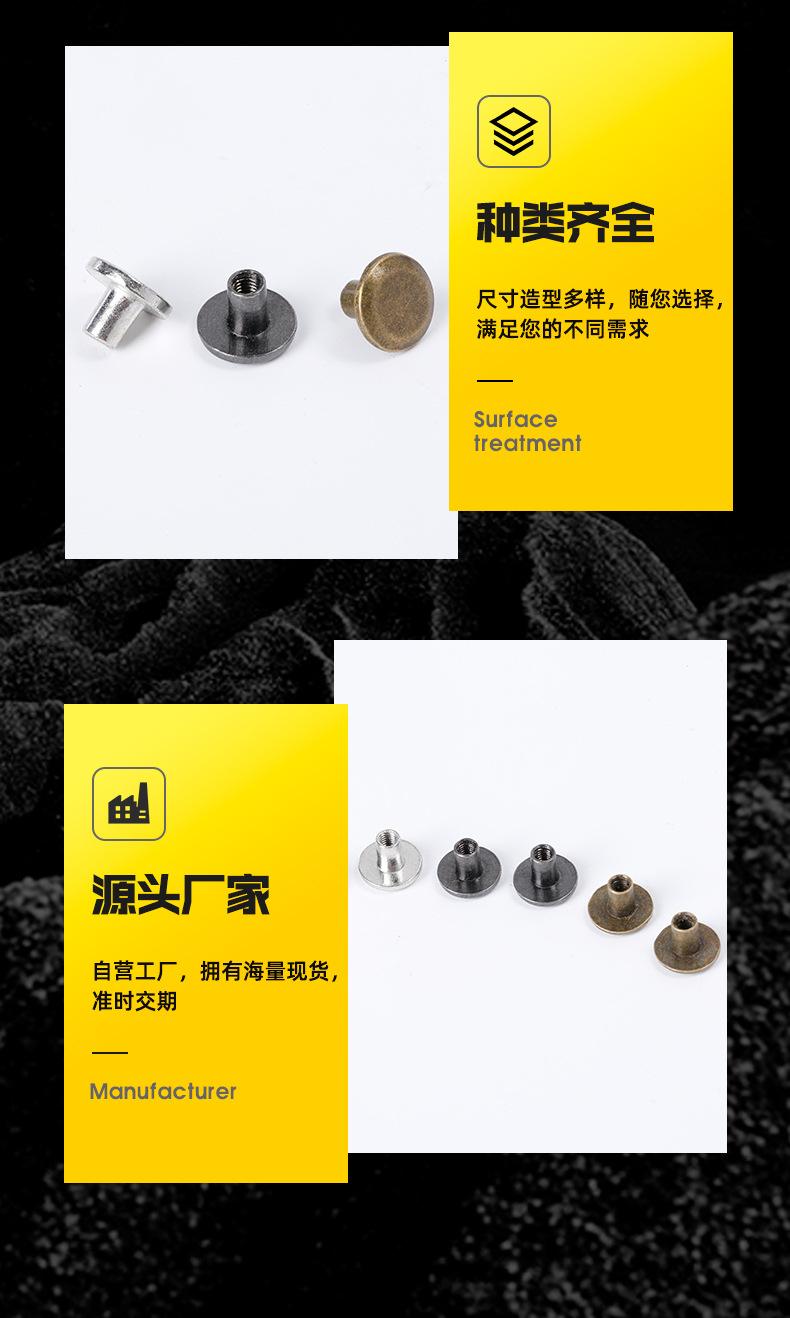 En Existencia Fabricante DIY Venta al por Mayor Redondo Plano Tornillos Remaches Herrajes Metal Artículos de Cuero Accesorios para Bolsos Botones a Presión