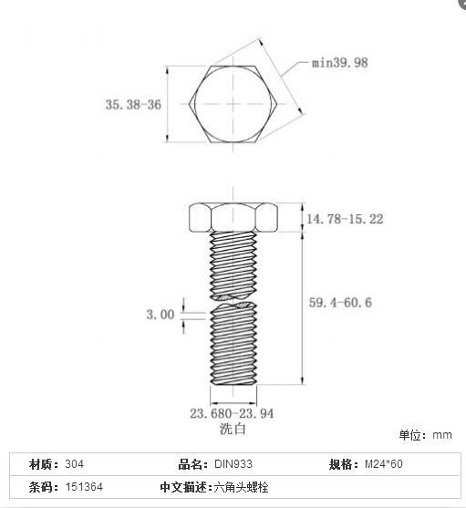 Perno de acero inoxidable 304 tornillo hexagonal exterior de acero inoxidable DIN933 perno hexagonal M22M24 dientes completos alargado