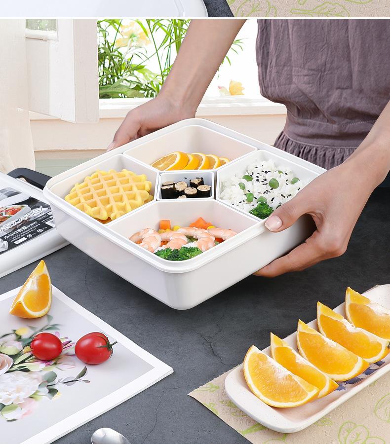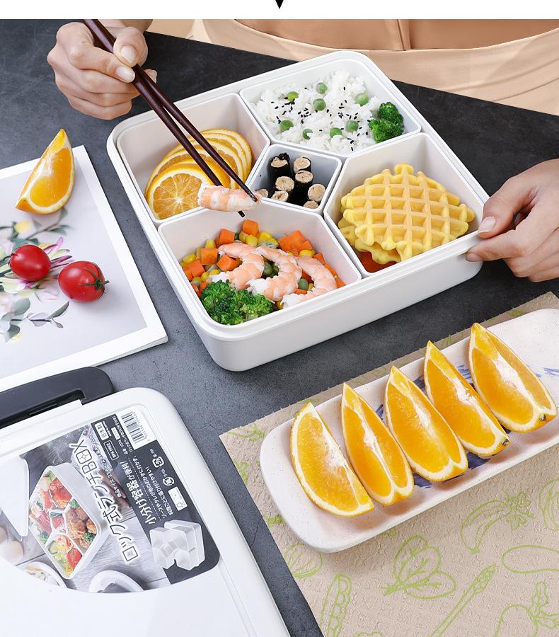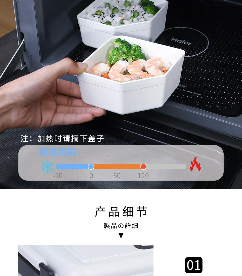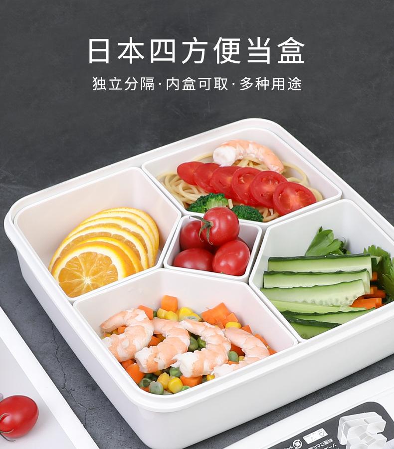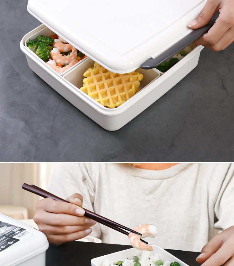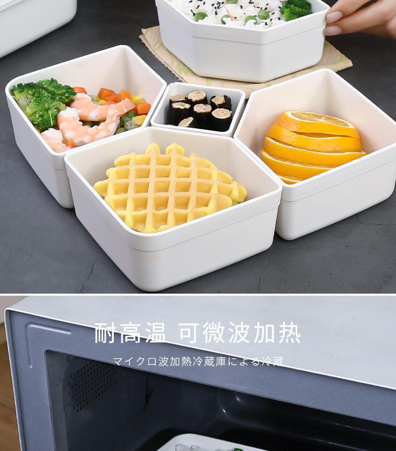 Caja de picnic portátil de plástico cuadrada japonesa, lonchera, apta para calentar en microondas, lonchera para estudiantes de grado alimenticio con tapa