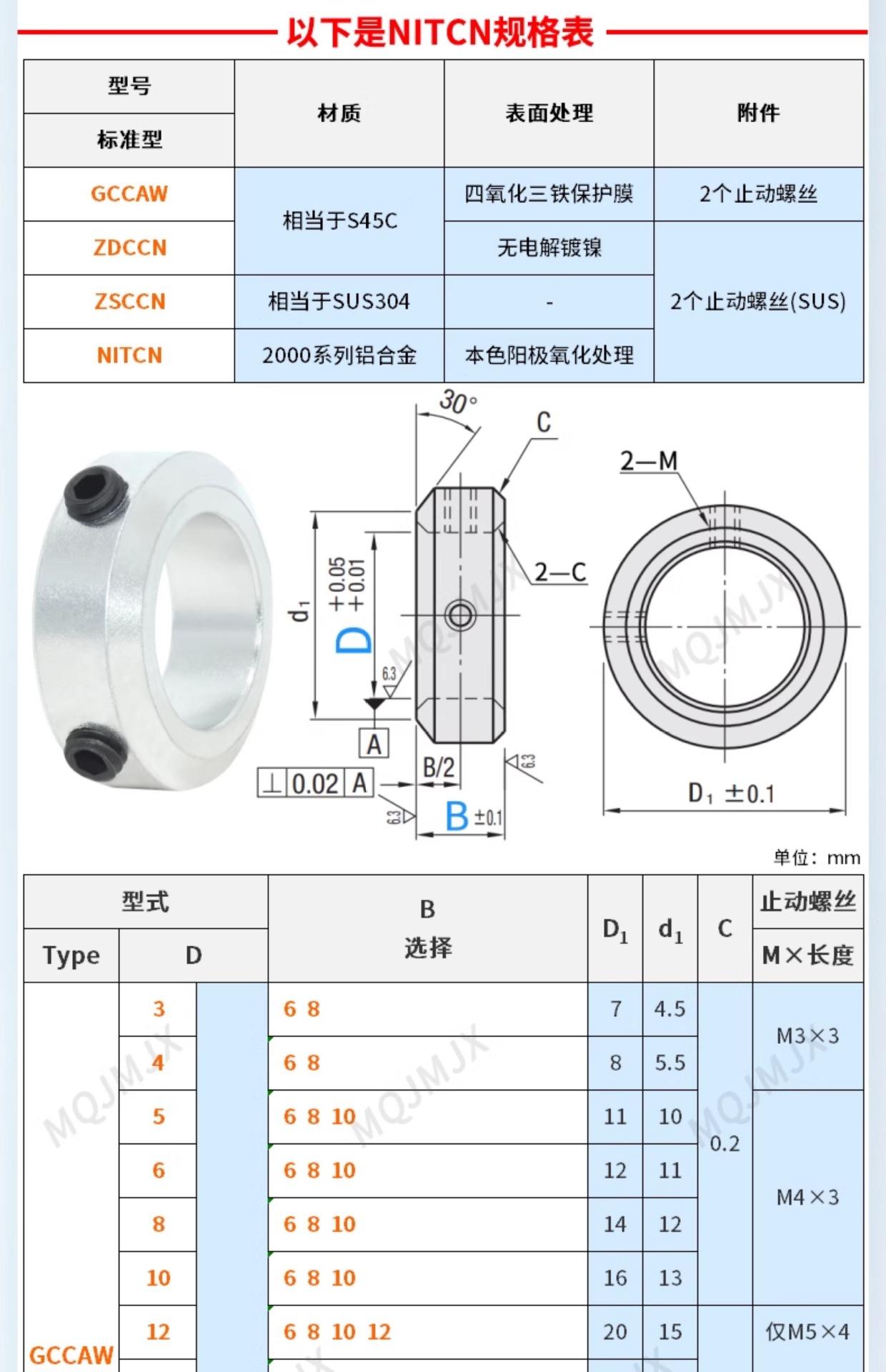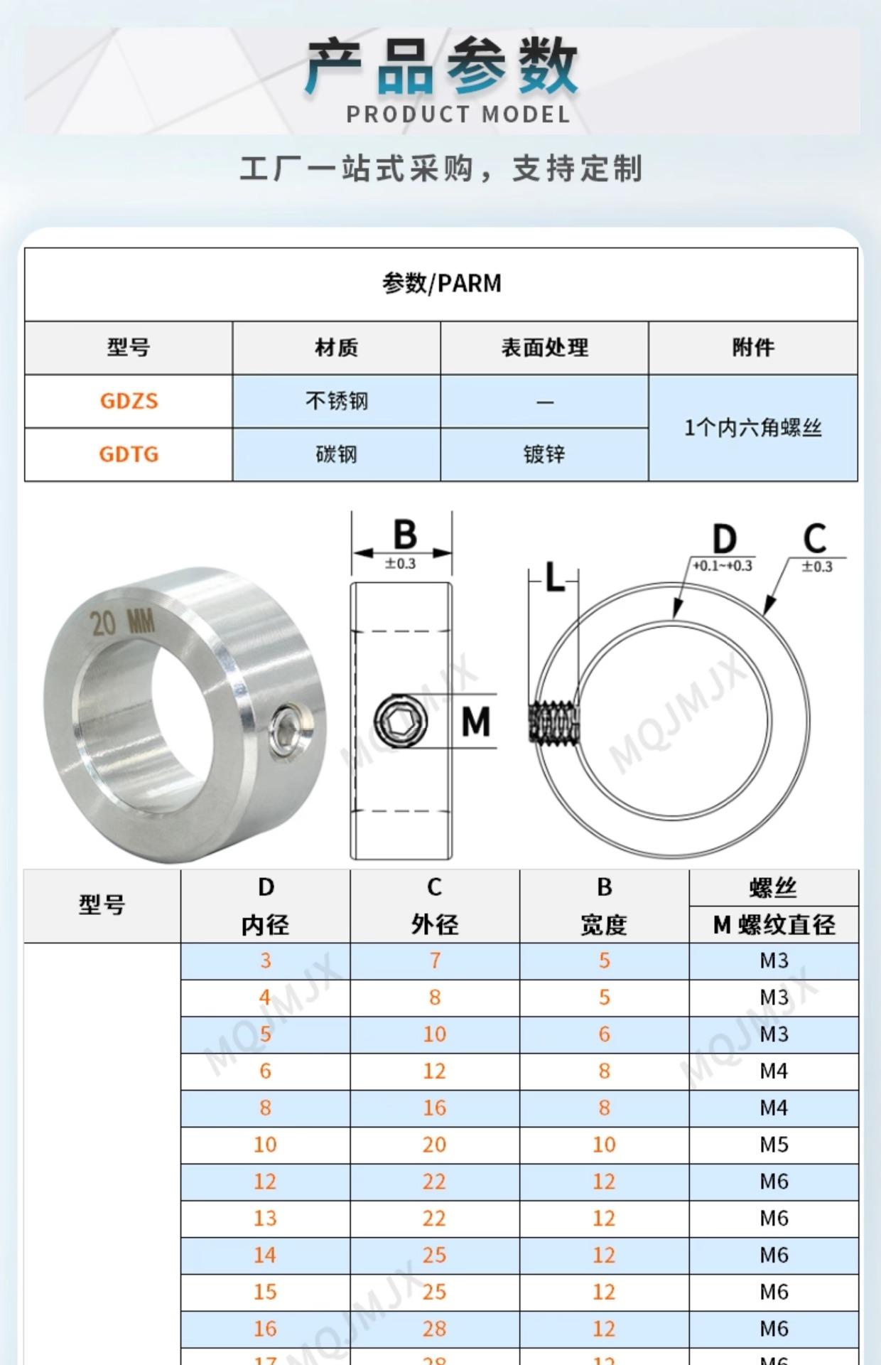 Gdzs Anillo de Retención de Acero Inoxidable Anillo de Fijación de Eje Óptico Abrazadera de Eje de Ajuste Tope de Manguito de Bloqueo con Tornillo de Fijación Manguito de Empuje Scca