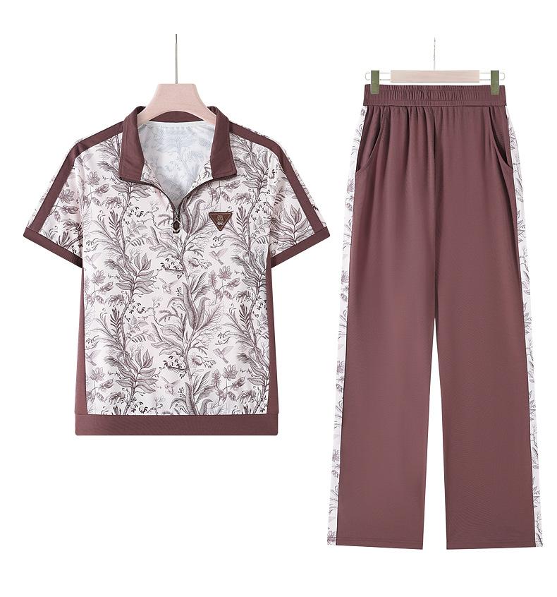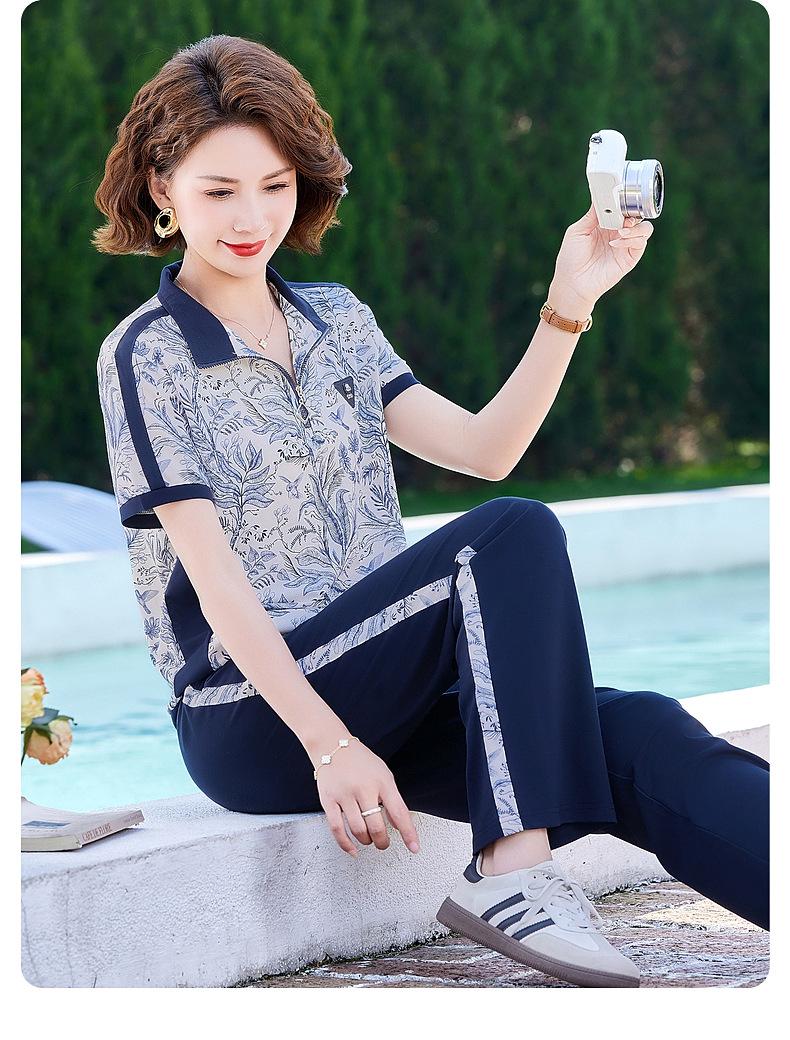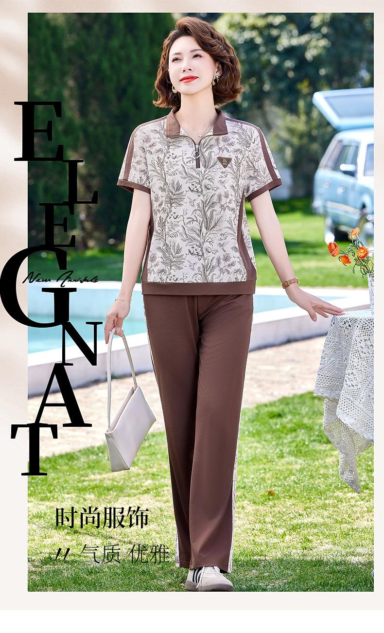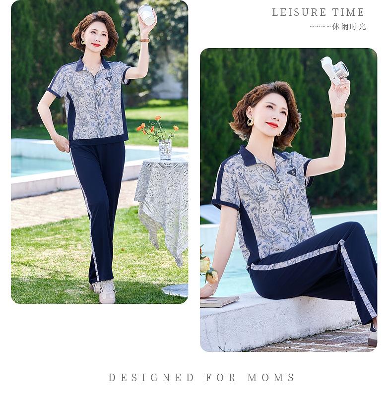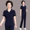Traje Deportivo Casual Nuevo 2025 para Mujer, Conjunto de Dos Piezas de Solapa y Manga Corta de Moda Veraniega para Mujeres de Mediana Edad y Mayores