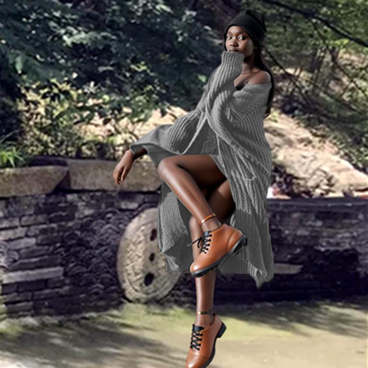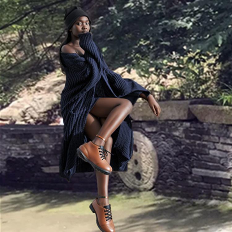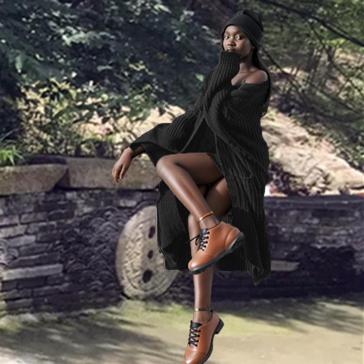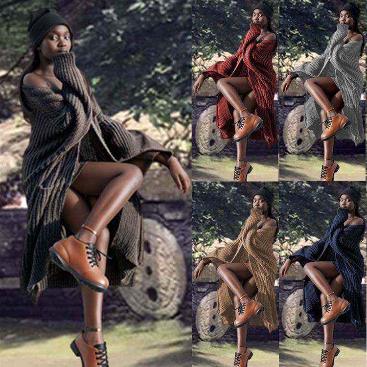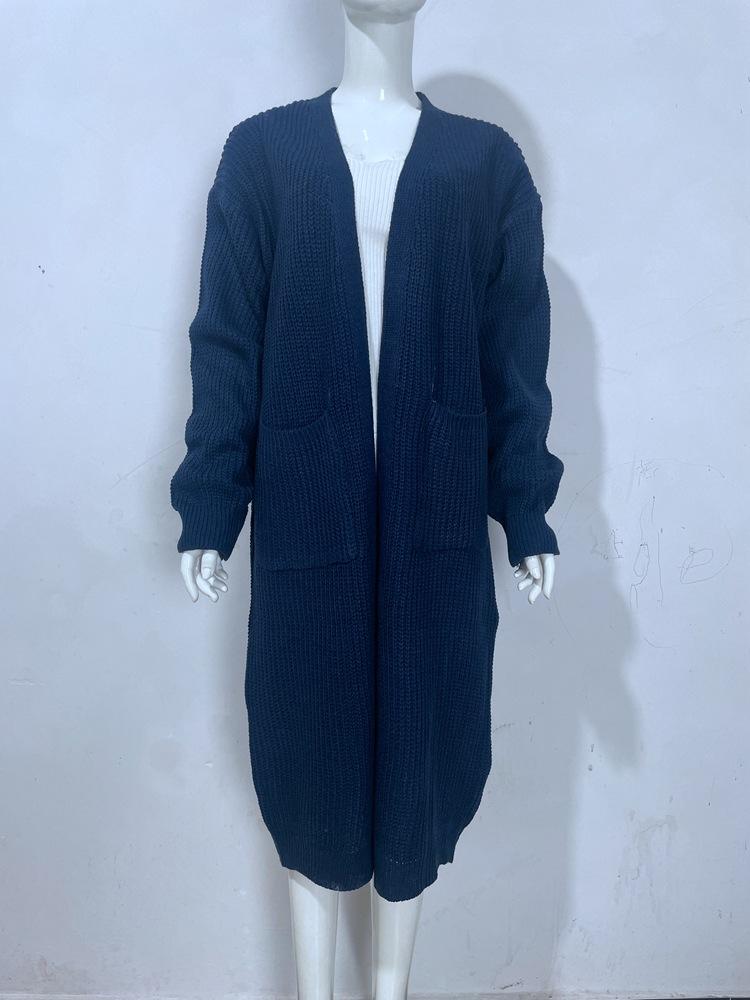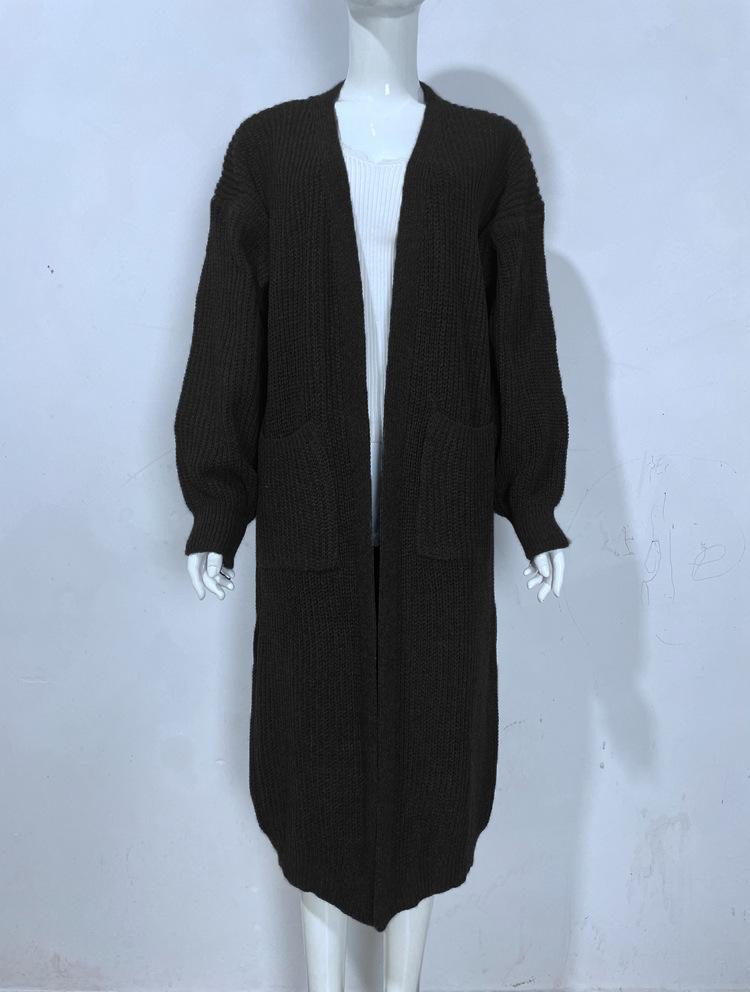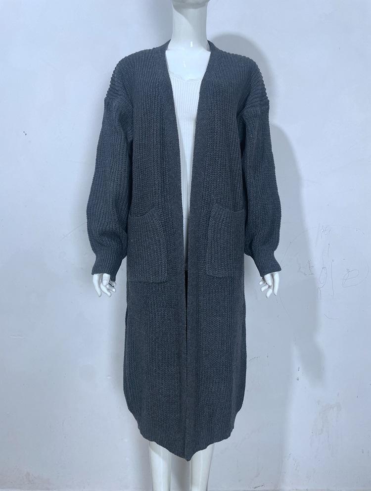 Comercio Exterior AliExpress Otoño e Invierno Cárdigan de Bolsillo para Mujer Suéter Nuevo Suelto Mediano-largo Talla Grande Abrigo Suéter para Mujer
