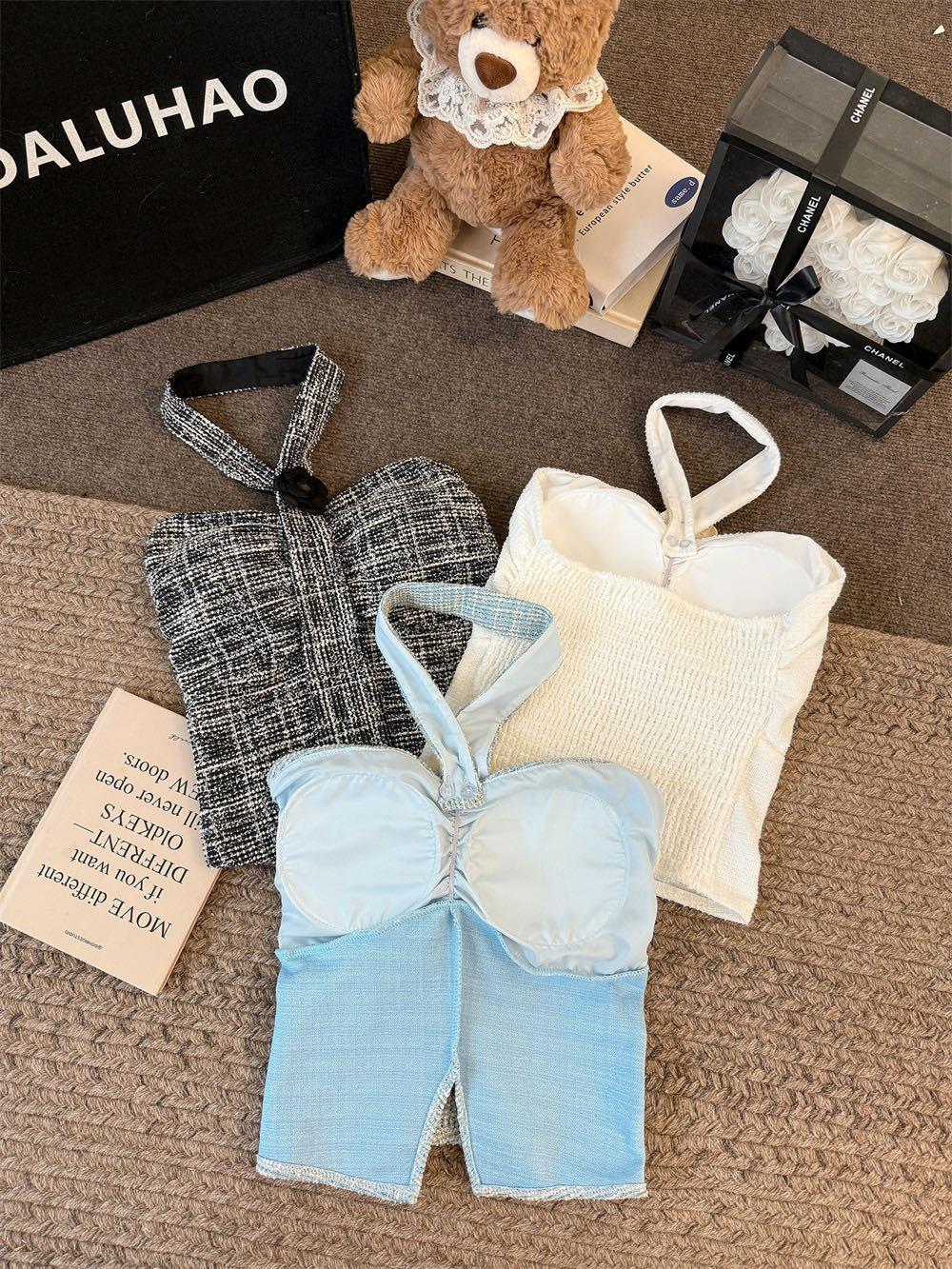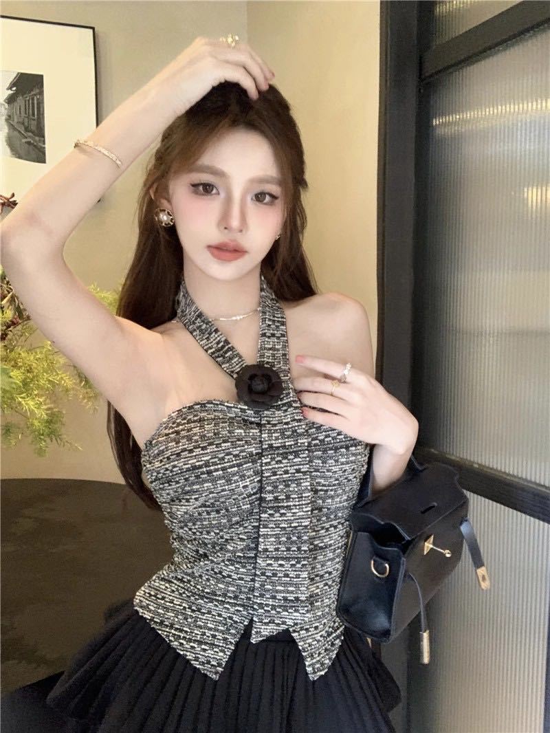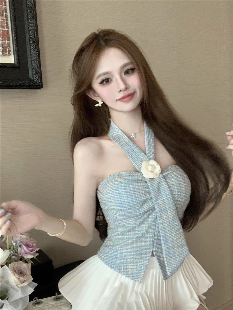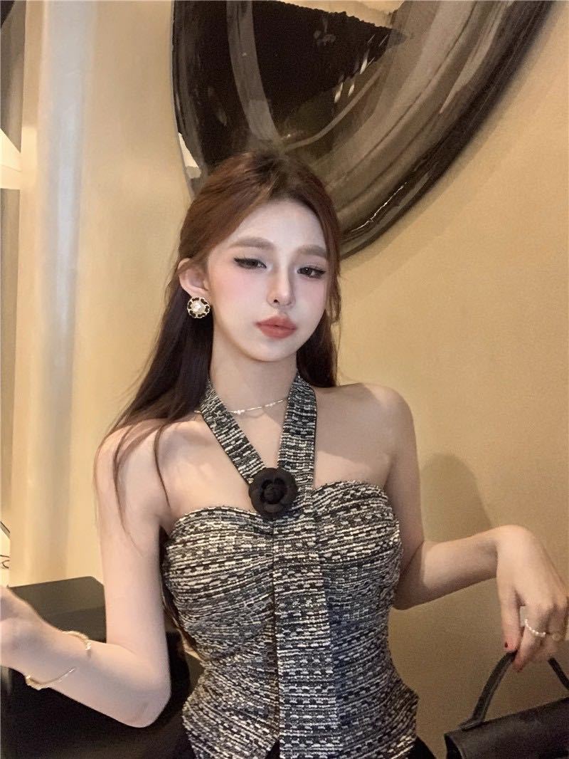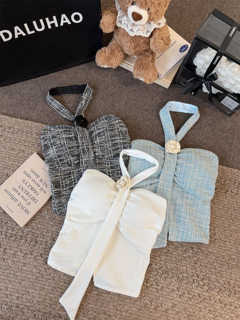 Estilo Lujuria Pura Encaje Francés Espalda Hermosa Nuevo Estilo Camisola Tirantes Halter Verano Chica Caliente Top Tubo con Almohadillas para el Busto