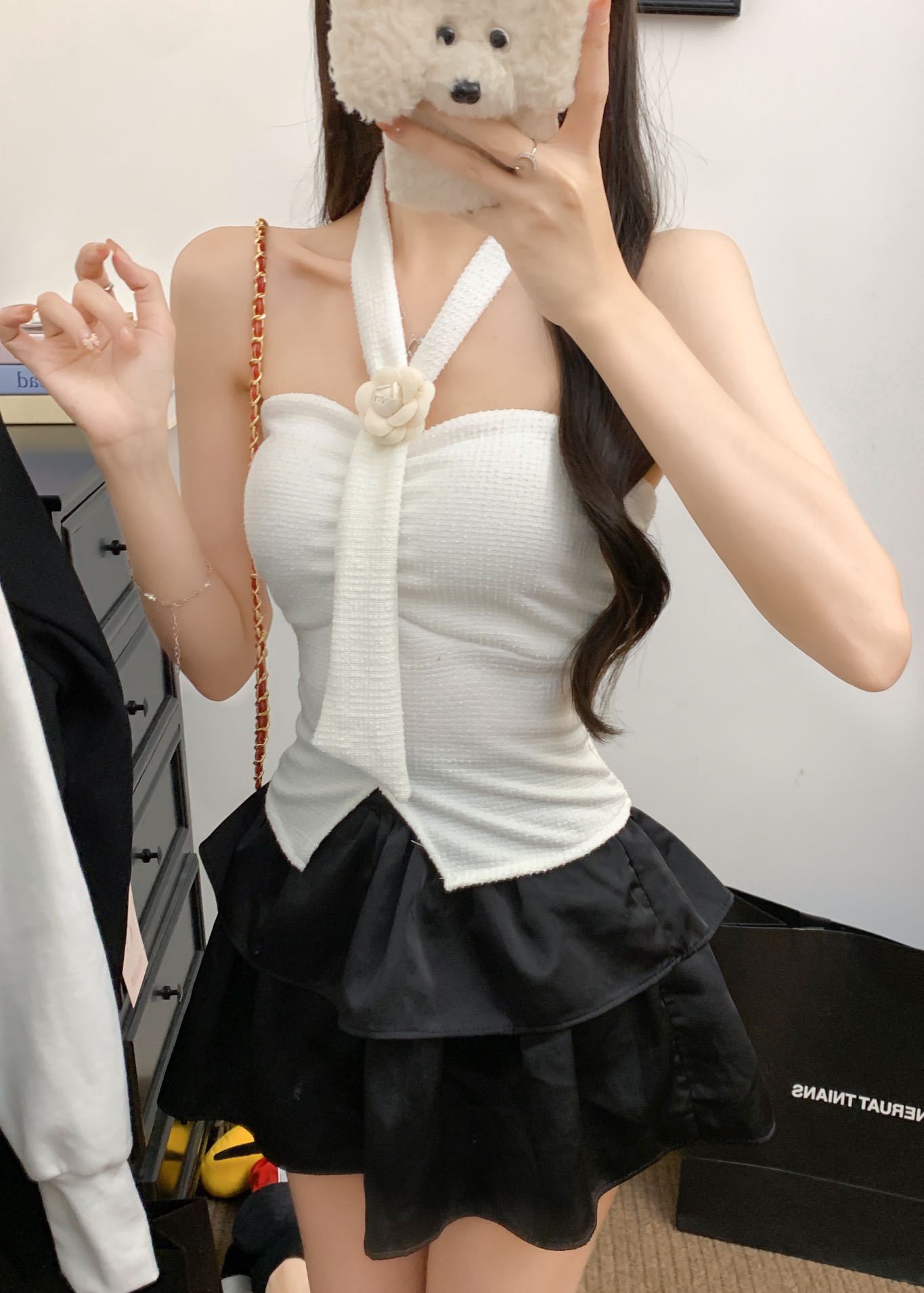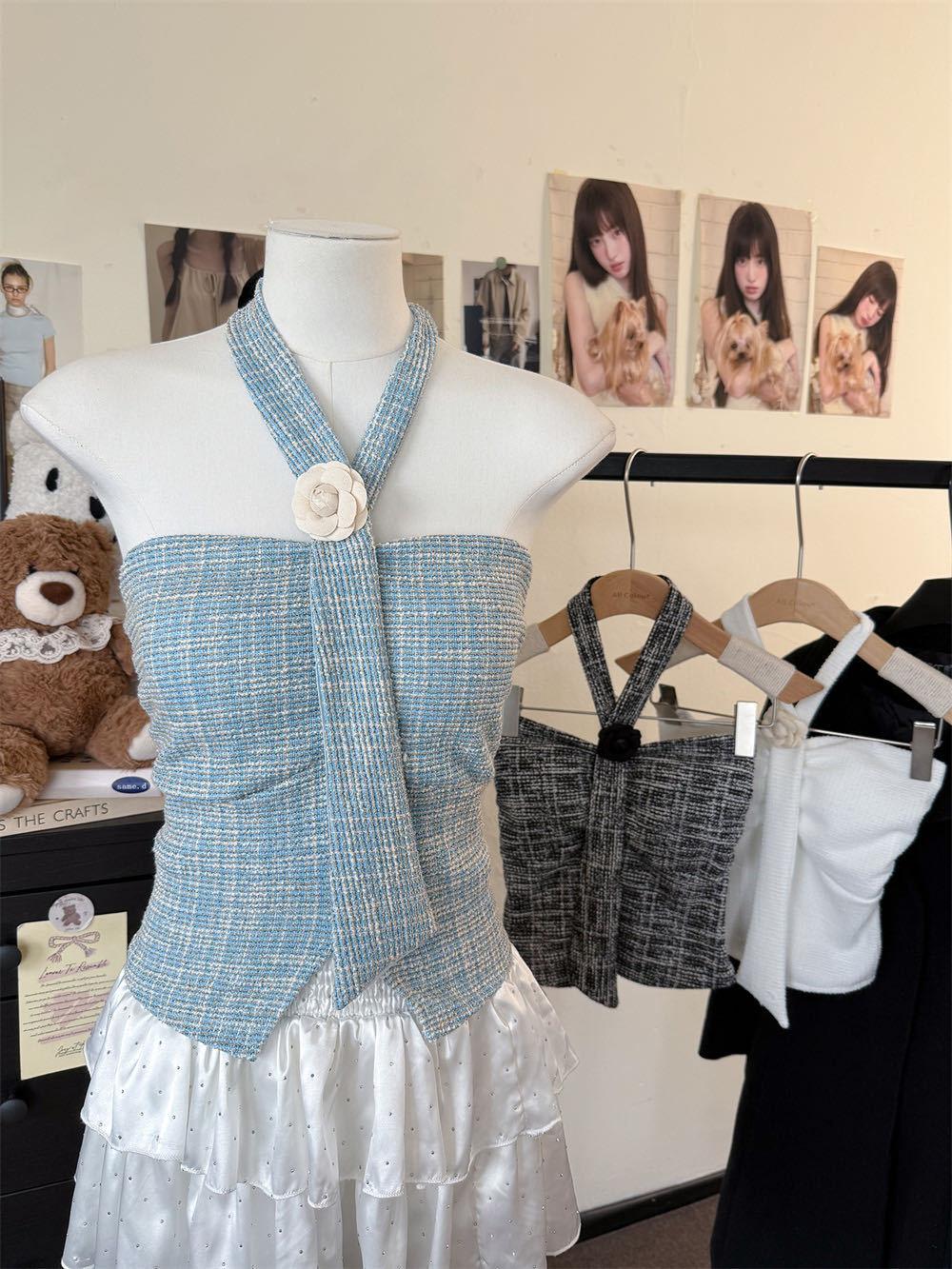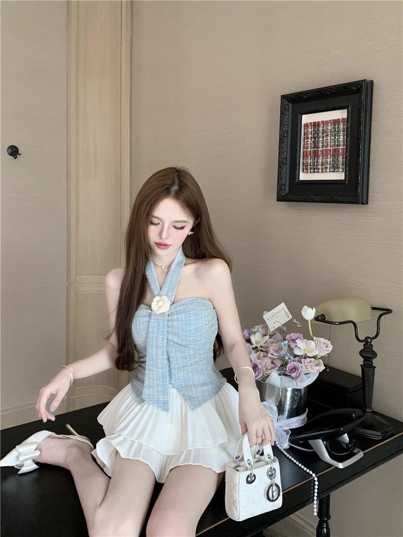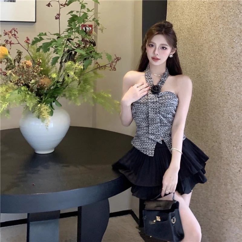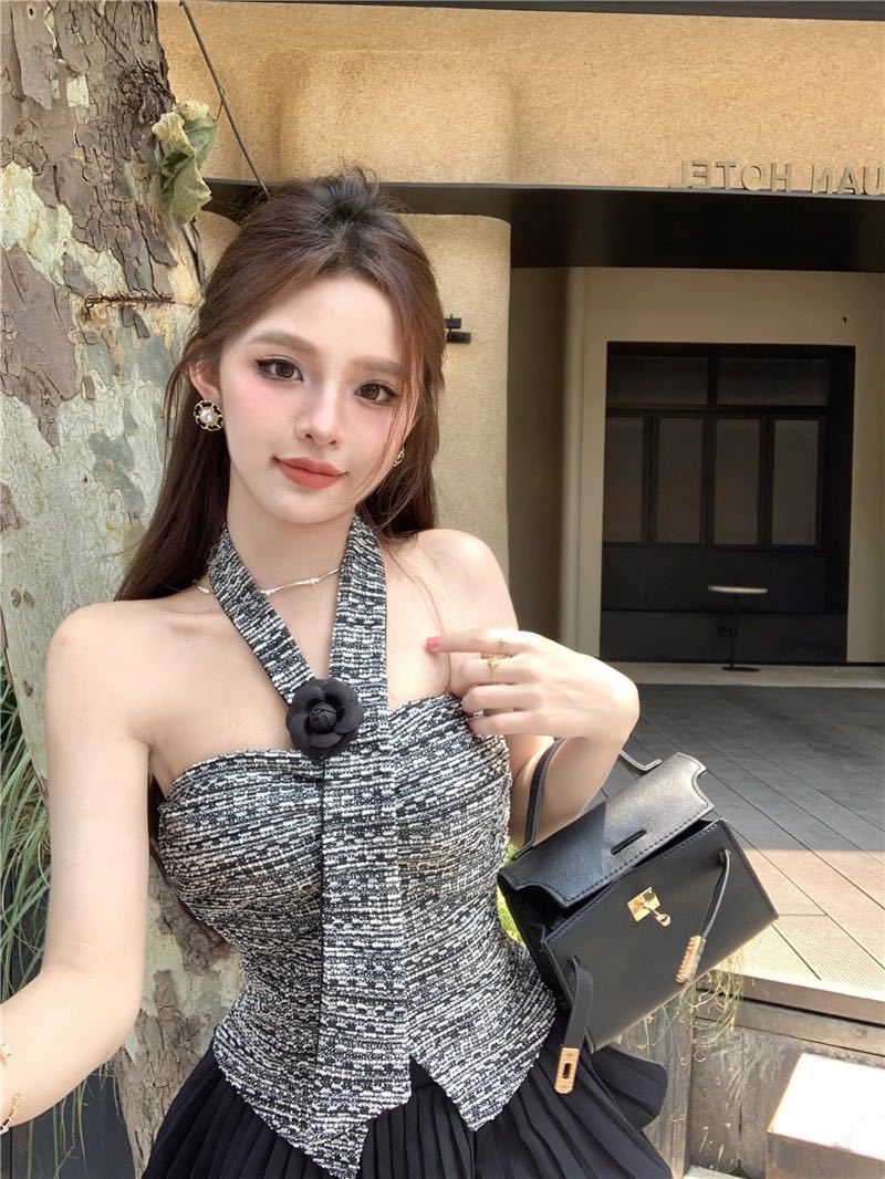 Estilo Lujuria Pura Encaje Francés Espalda Hermosa Nuevo Estilo Camisola Tirantes Halter Verano Chica Caliente Top Tubo con Almohadillas para el Busto